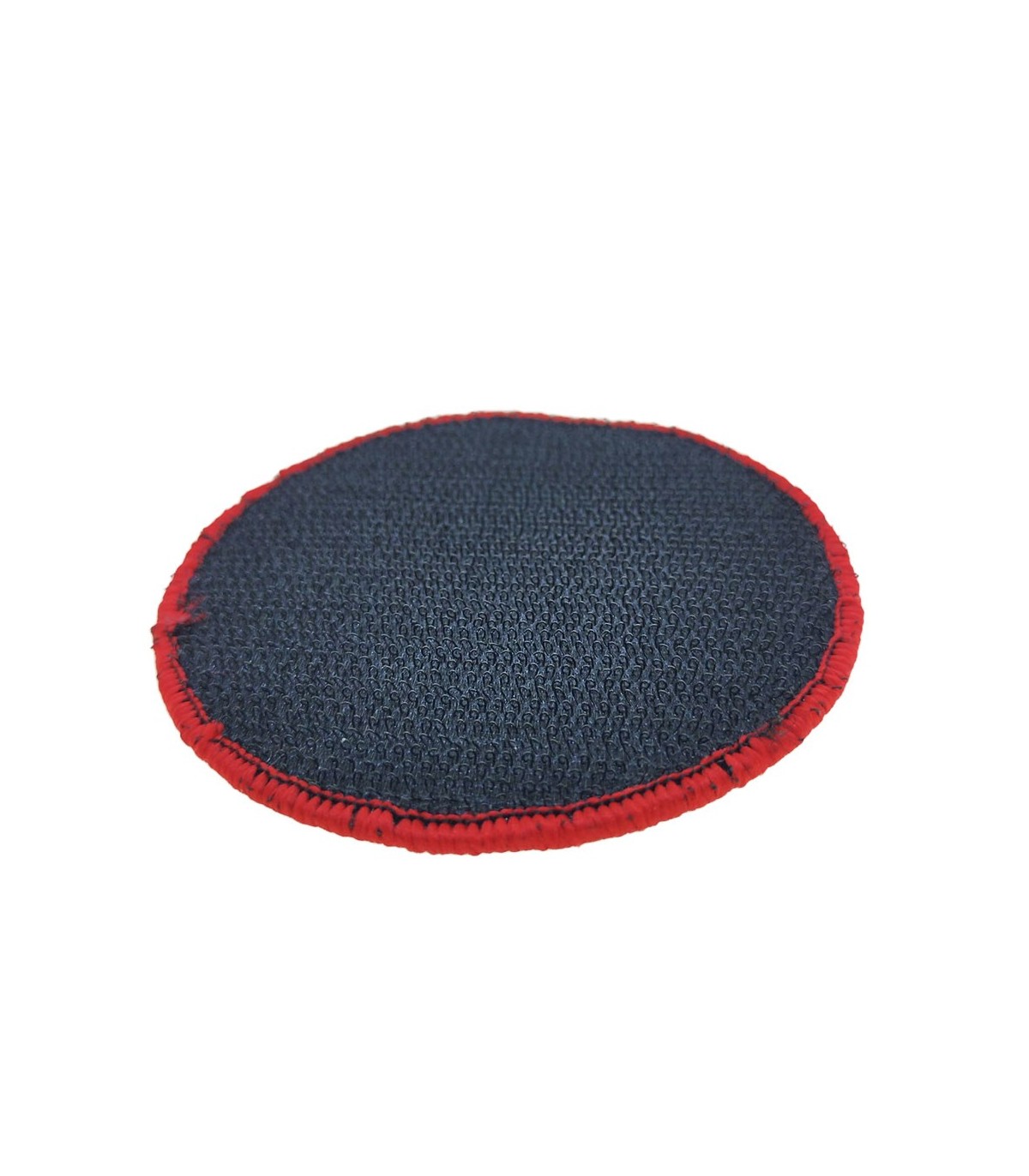<p>El parche está realizado en colores negro, amarillo y rojo.</p>