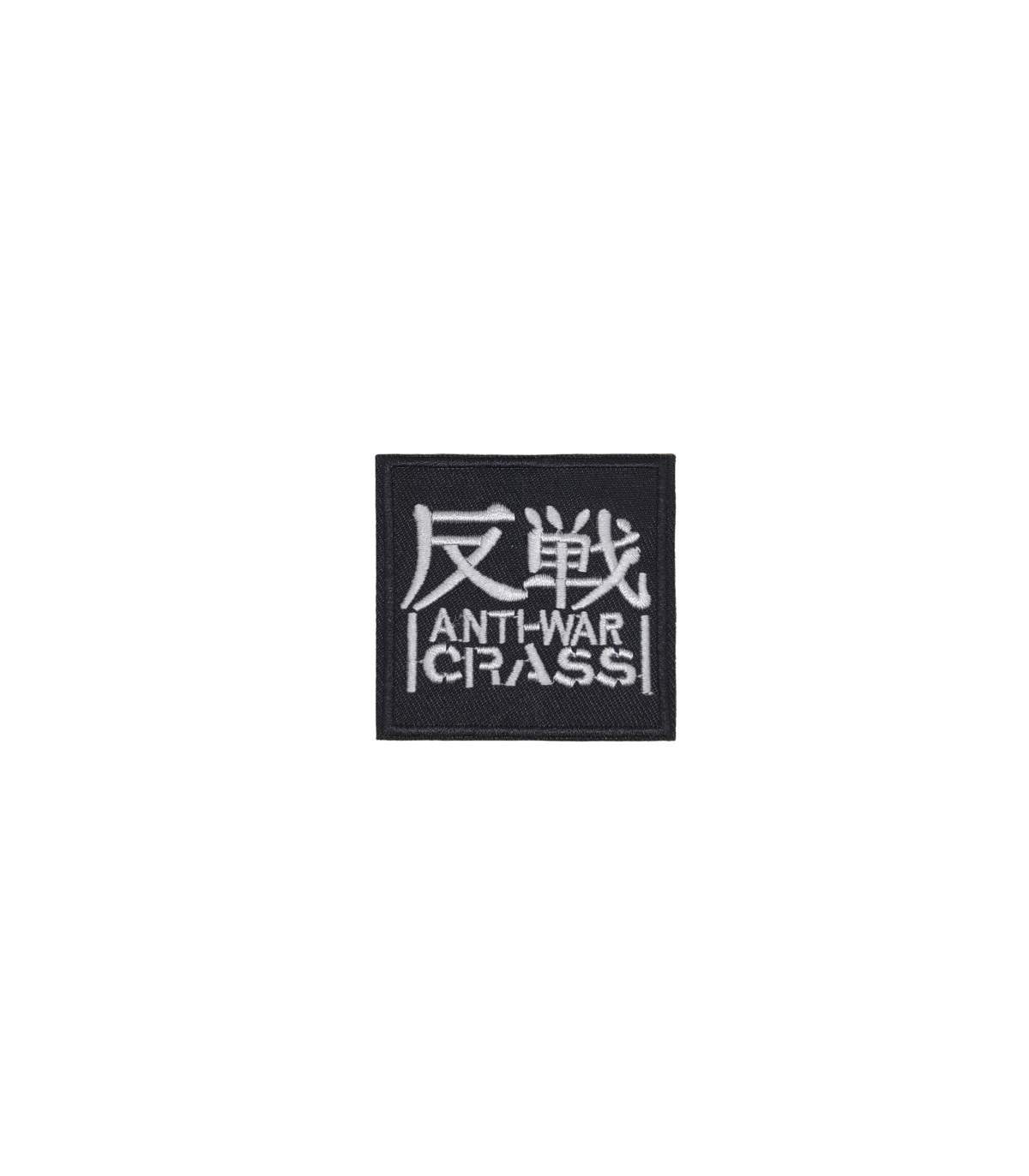 <p>▶ Gemelolandia presenta este parche con unas letras chinas y la frase: Ant-War Crass .</p>
