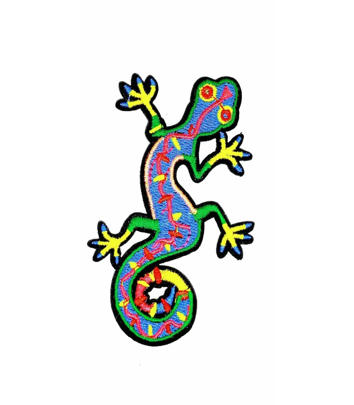 <p>Gemelolandia presenta este parche con una salamandra llena de colores vivos.</p>