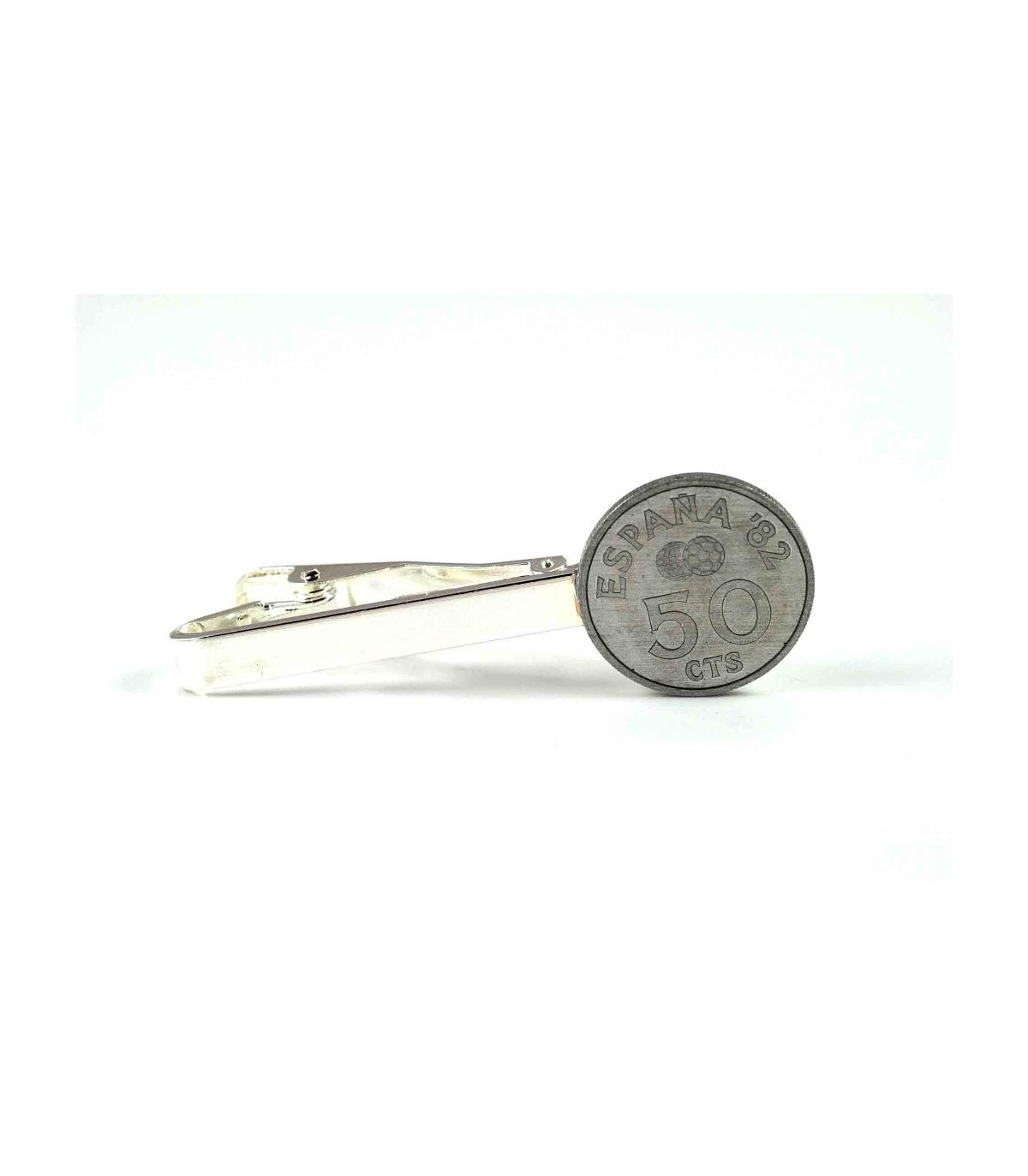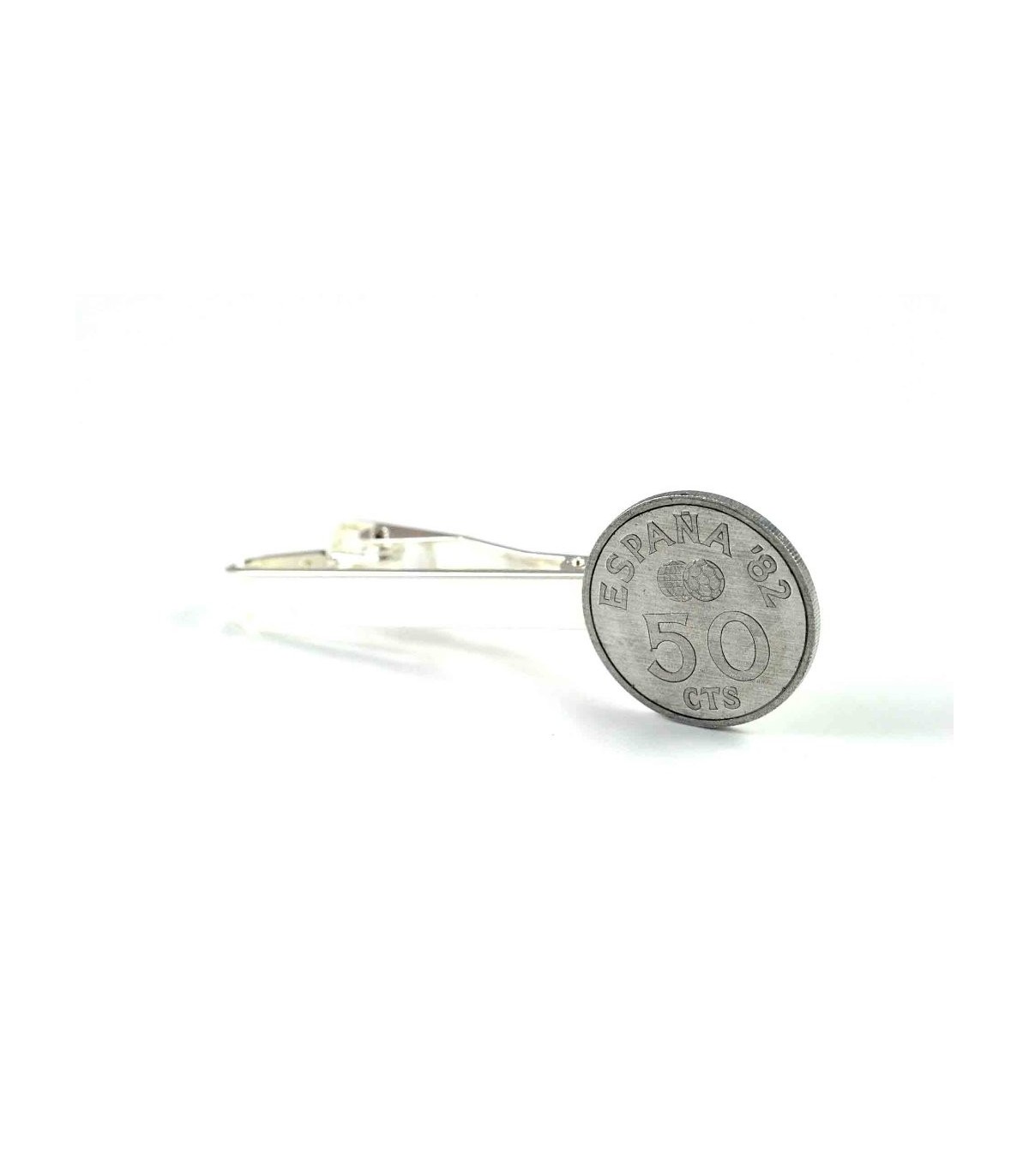 Pasador de Corbata con una mondeda de 50 céntimos de España 82. Acabada sin ningun tinte para mostrar el color original de la moneda