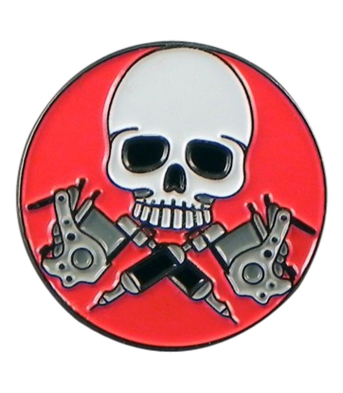 <p>Gemelolandia presenta este Pin de Solapa que representa una calavera con una máquina de tatuajes representada en varios colores</p>