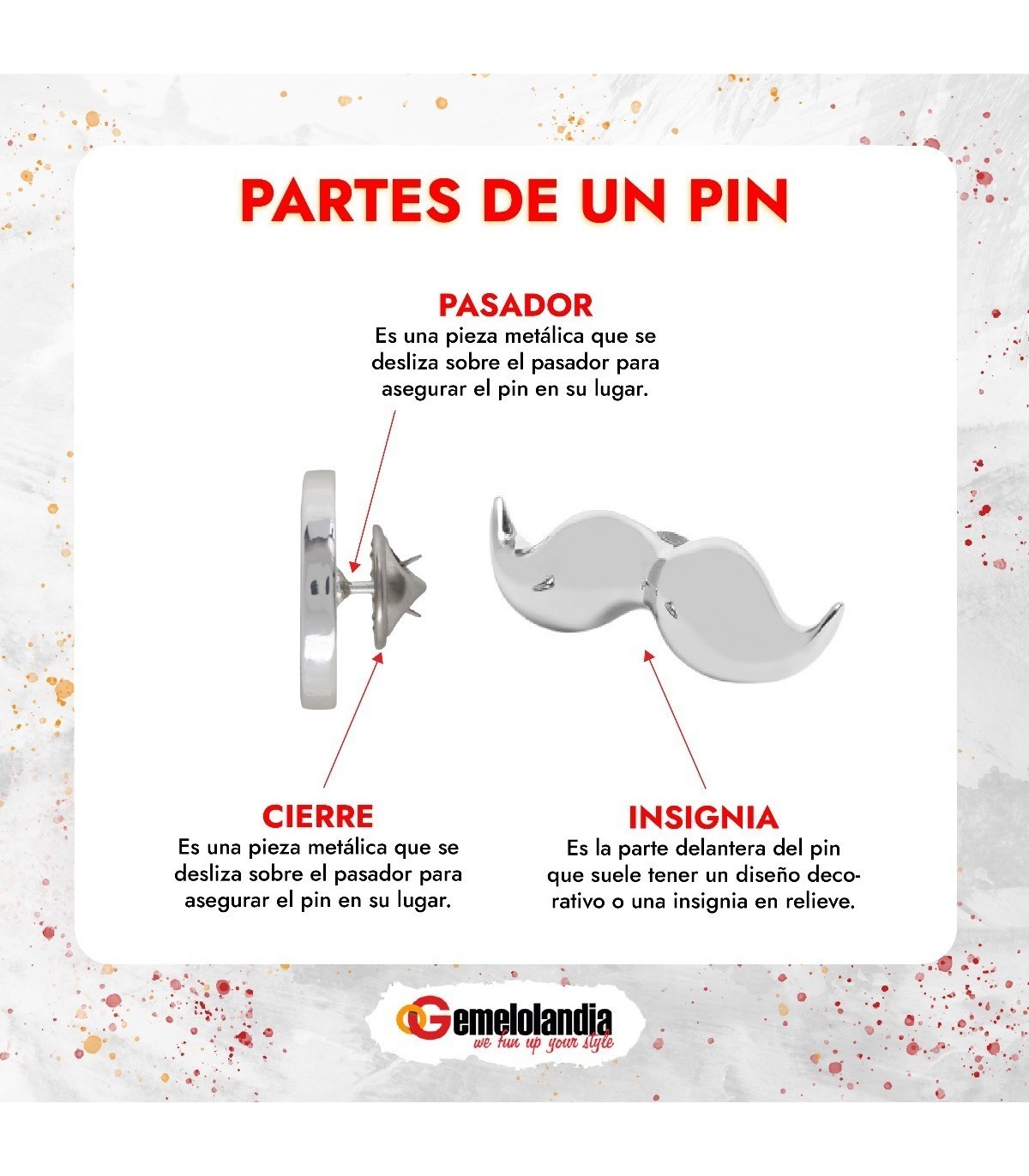 Pin de Solapa Salvador Dalí esmaltado a color en tamaño 30x23mm.