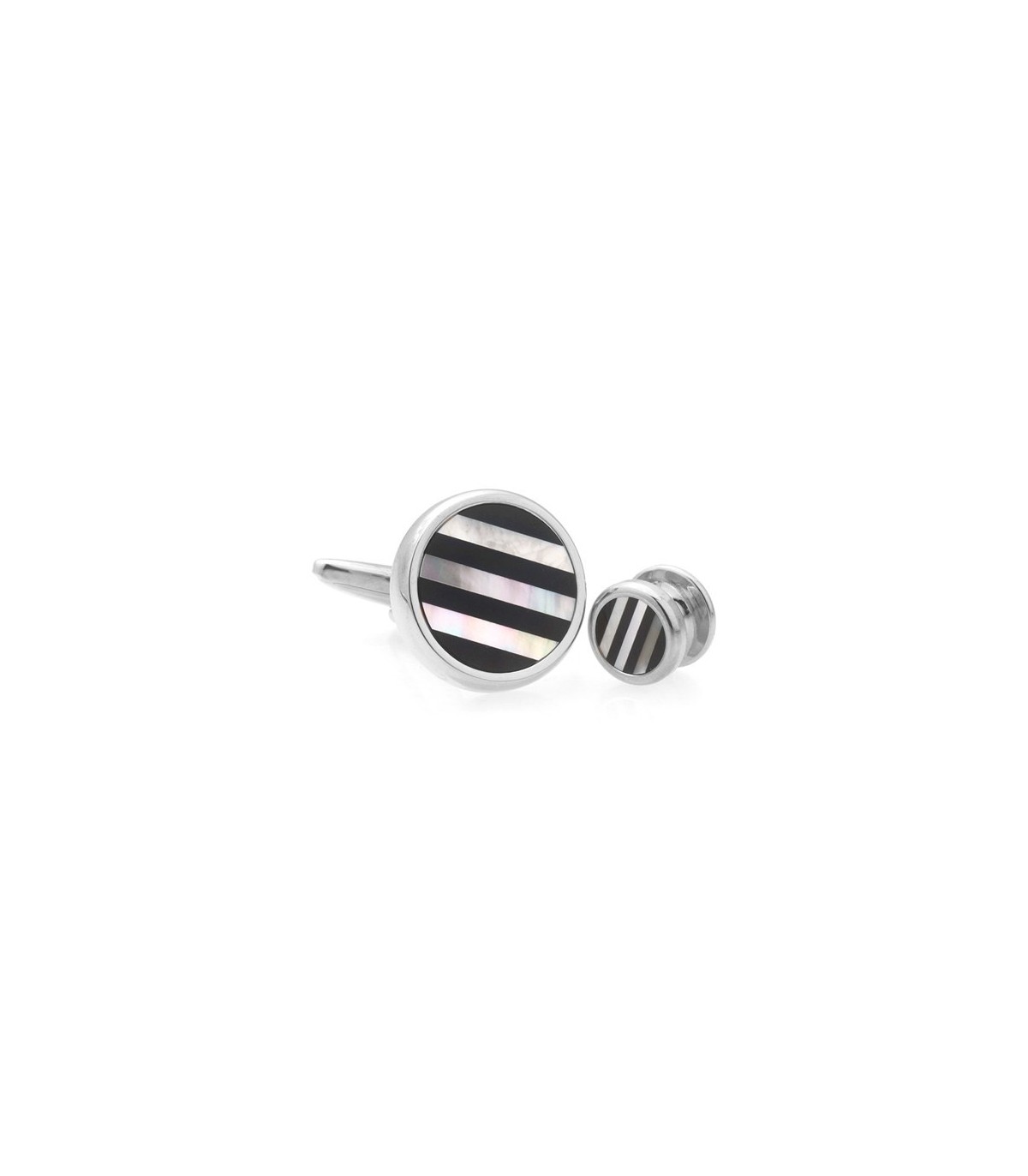 Stud Set Botones de Esmoquin y Gemelos Black and Nacar Round