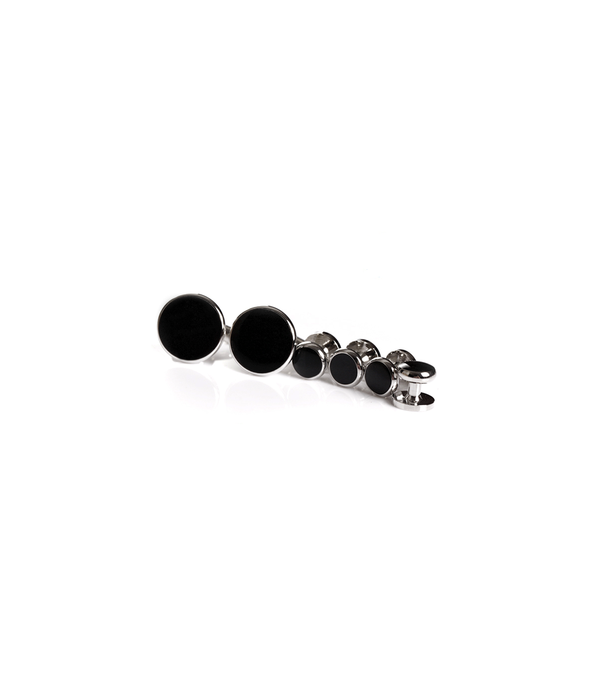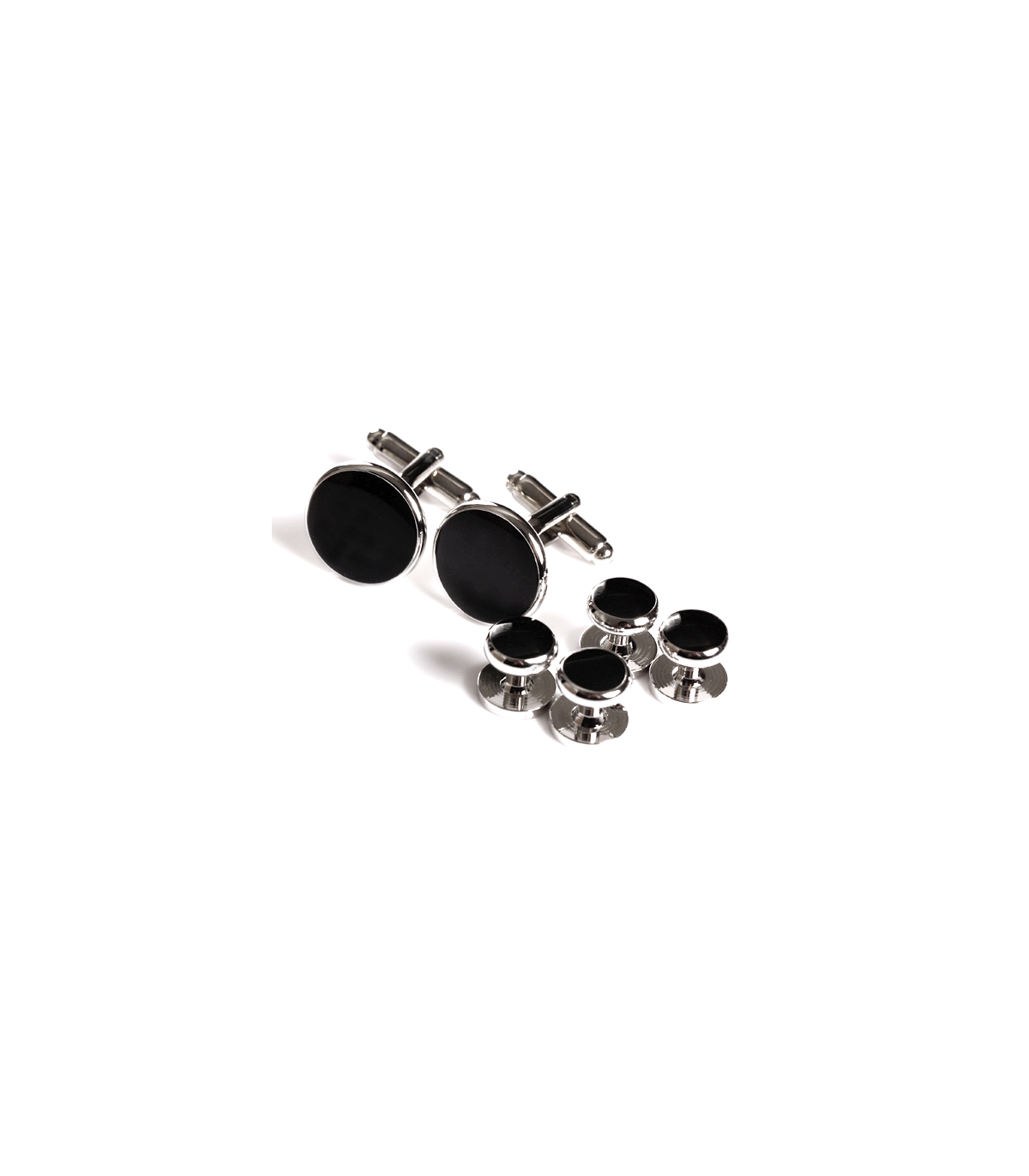 Stud Set Botones de Esmoquin y Gemelos Sterling Plated and Black Onix