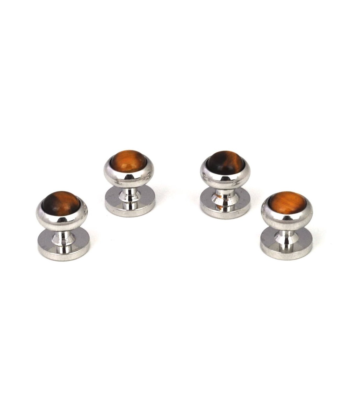 Stud Set Botones de Esmoquin y Gemelos Sterling Plated and Brown Stone