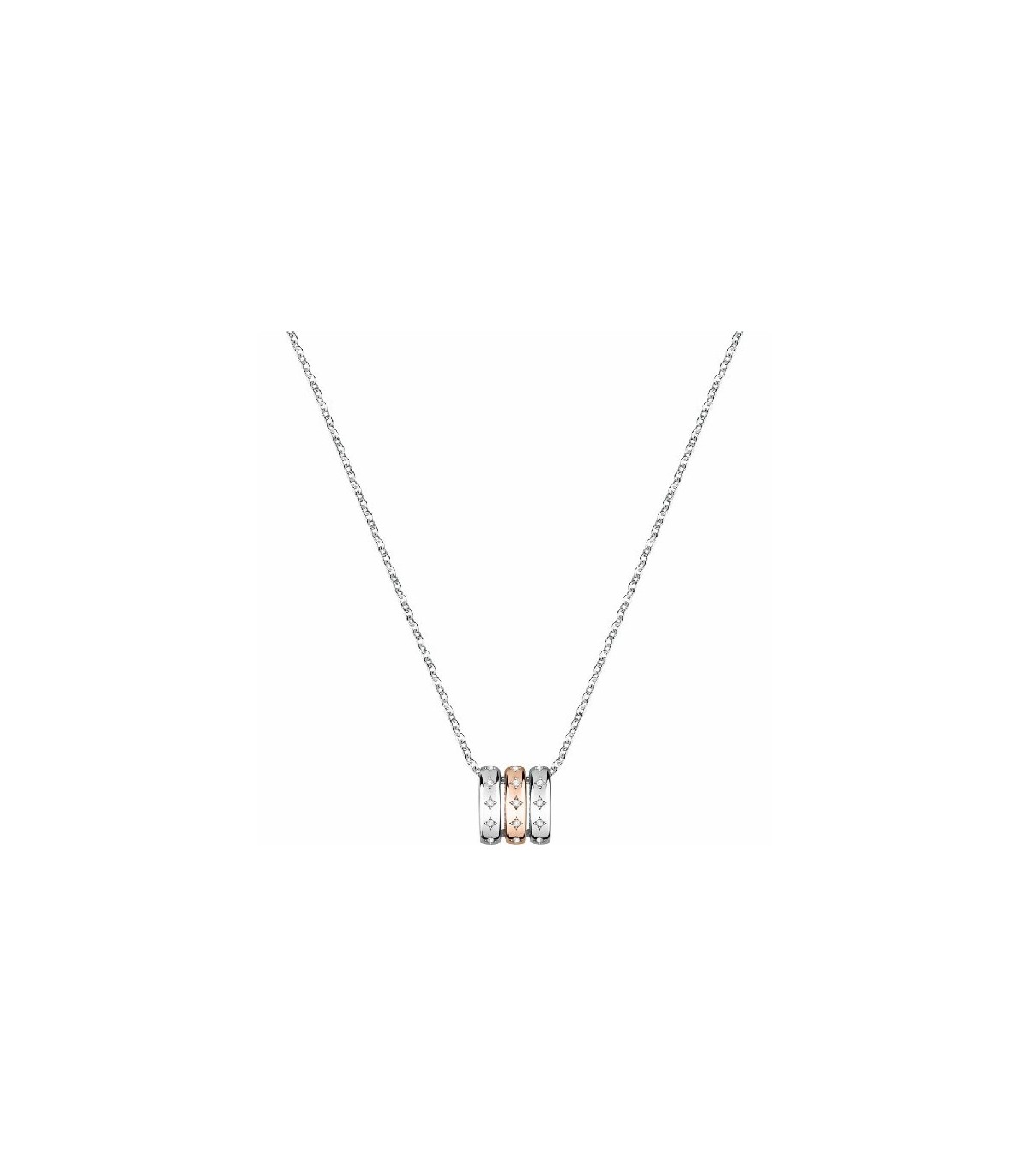 Cadena y colgante para mujer MORELLATO. Fabricado en acero bicolor. Acabado brillo. Piedras circonitas. Motivos círculos achatados 15 x 15 mm. Medida 40/45 cm.