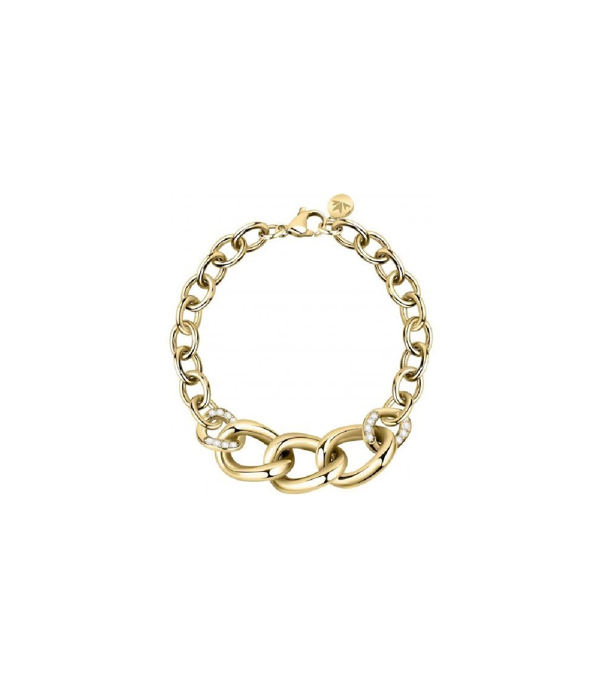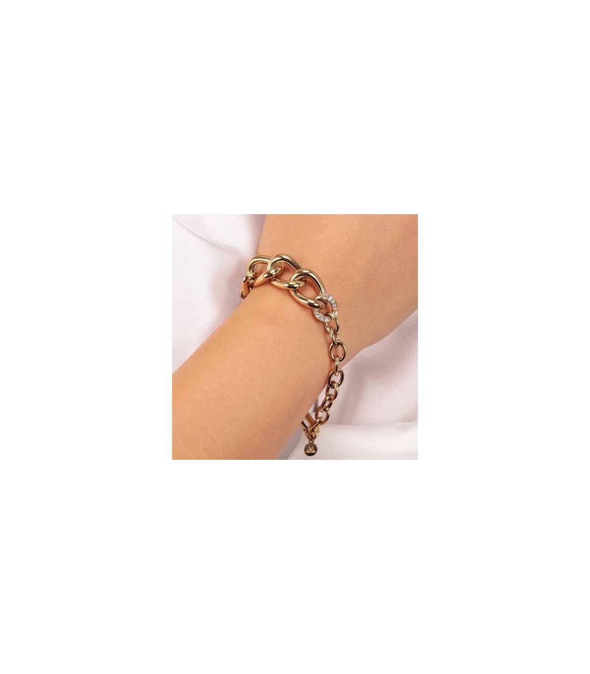Pulsera para mujer MORELLATO. Modelo cadena. Fabricada en bronce color dorado. Cristales. Cierre mosquetón. Tamaño 18 cm.