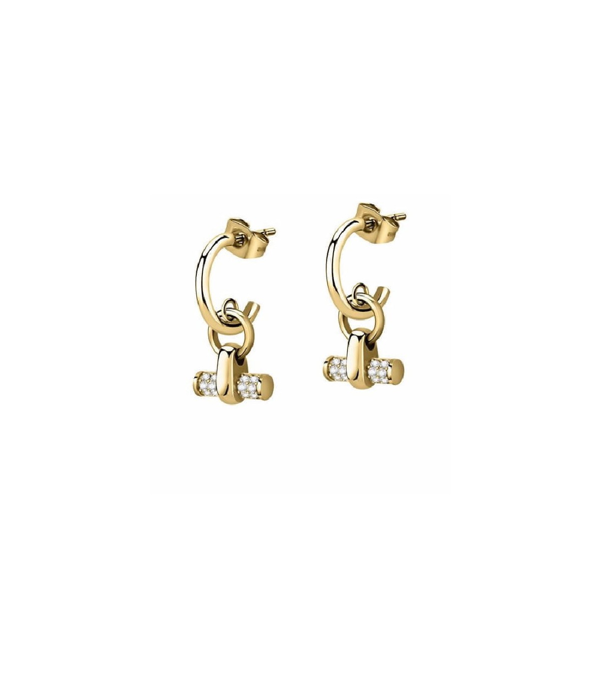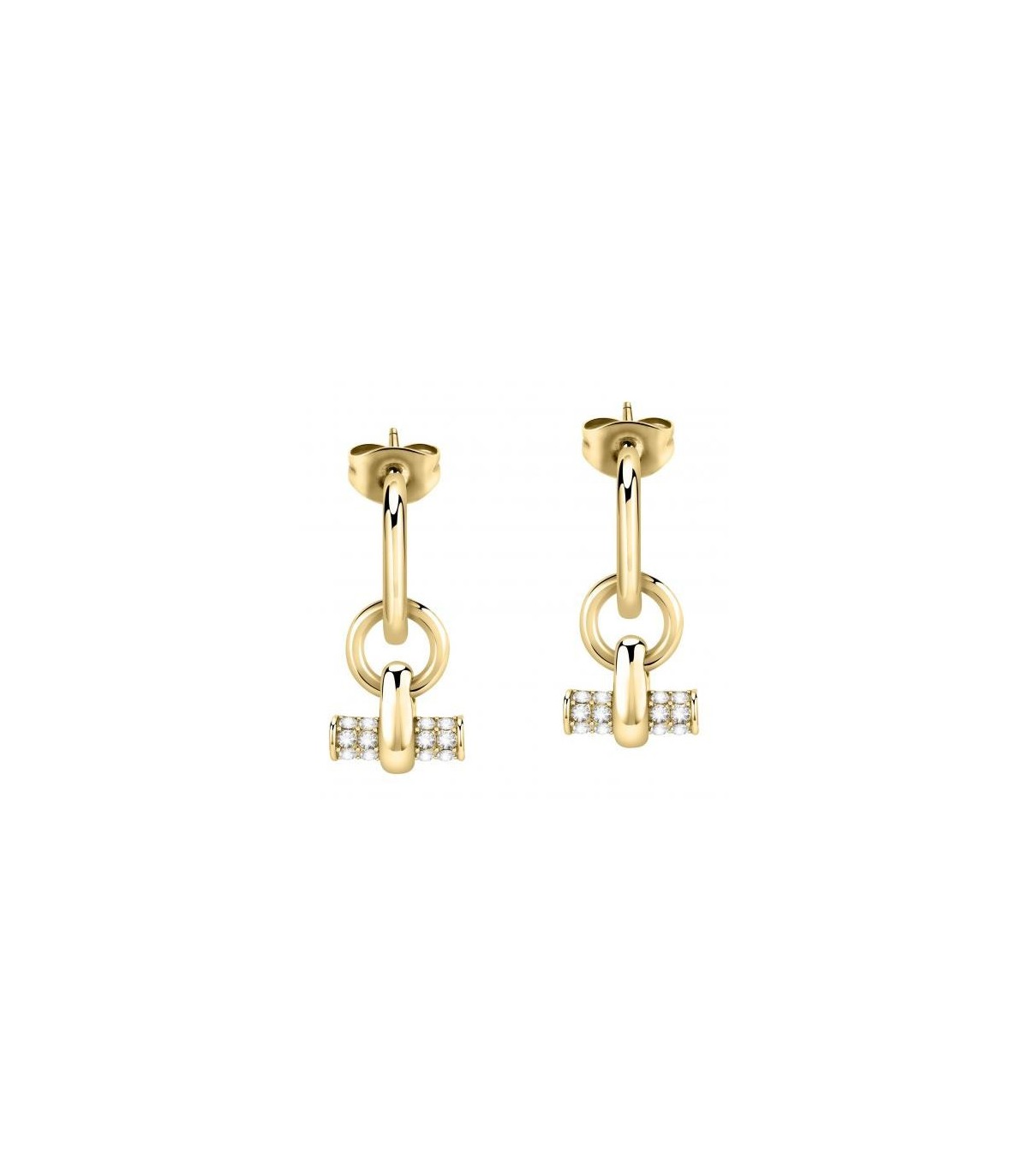 Pendientes para mujer MORELLATO. Fabricado en bronce dorado. Acabado brillo. Piedras cristales. Tamaño 2 x 20 mm