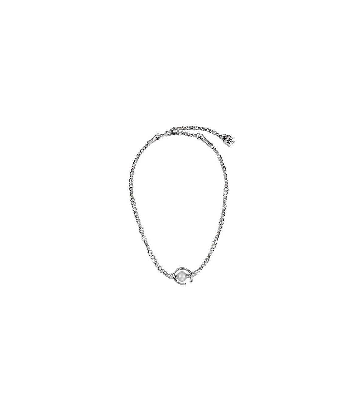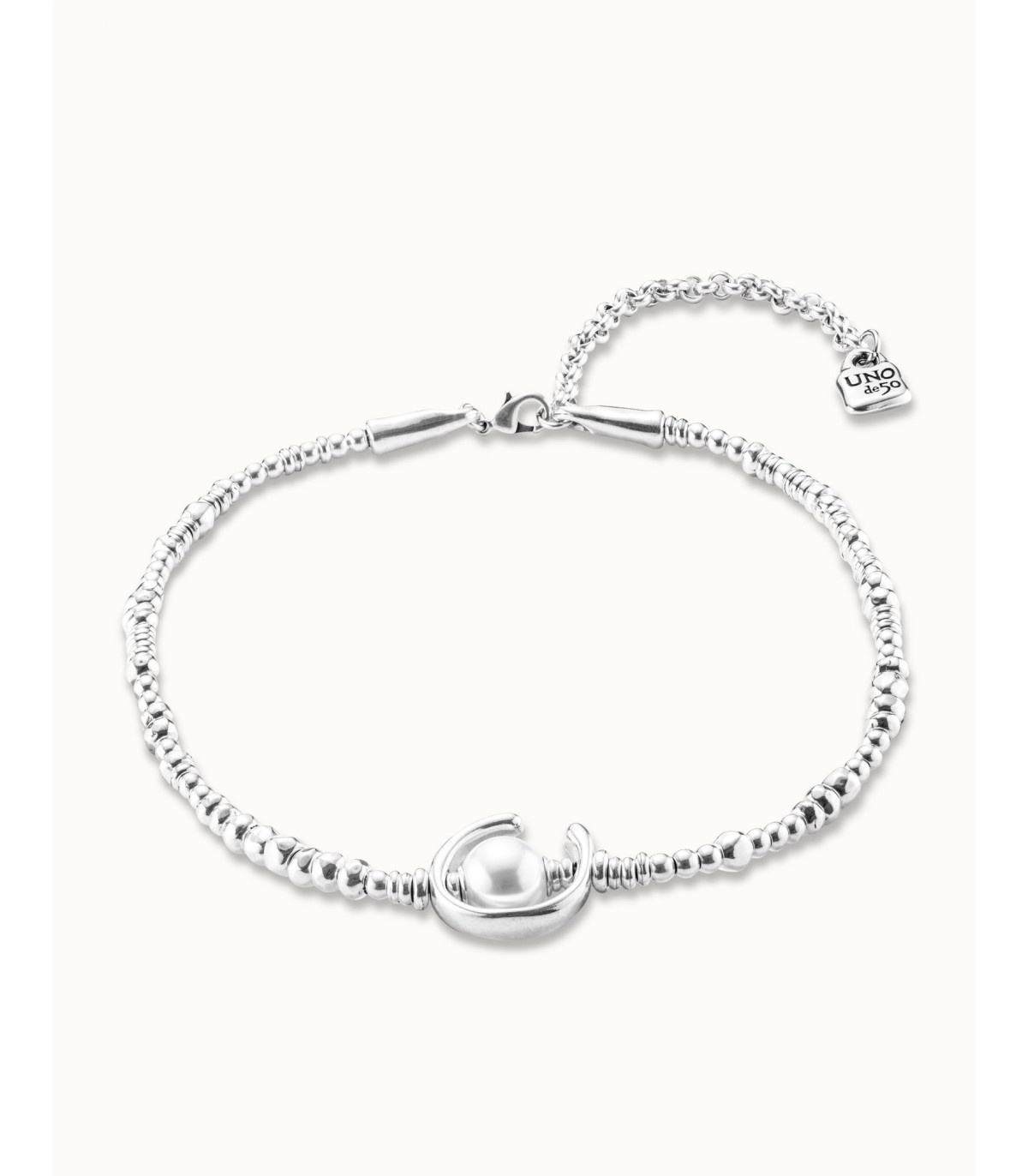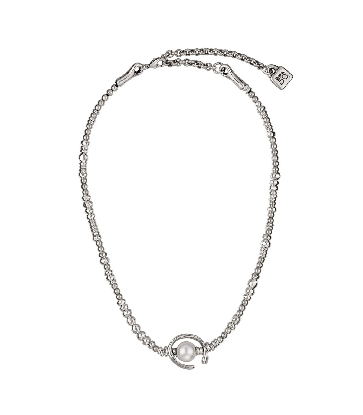 Collar para mujer UNO DE 50. Aleación de metales con baño de plata 15 micras. Medida 45 cm. Tamaño perla14 mm. Realizado de manera artesanal 100 % y en ESPAÑA.