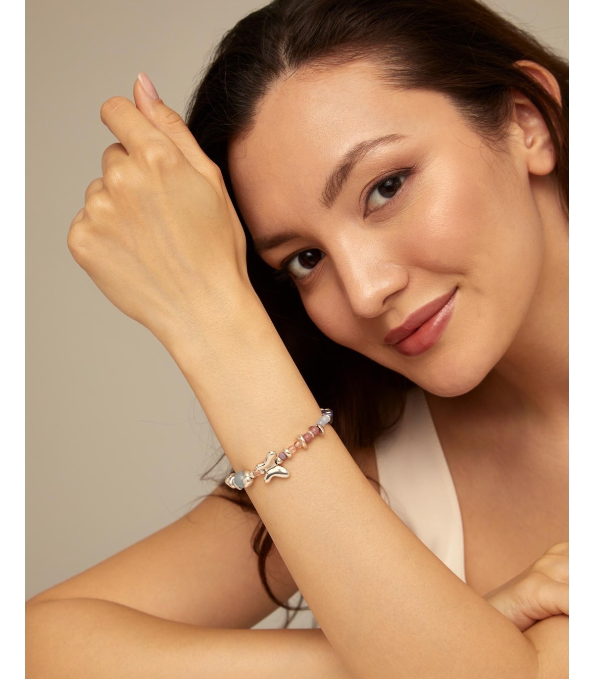 Pulsera de plata de cristales y mariposa free. Inspirada en elementos de la naturaleza con diseño de cristales artesanal multicolor en tonos azules y rosa.Envíos GRATIS y en 24/48 h.