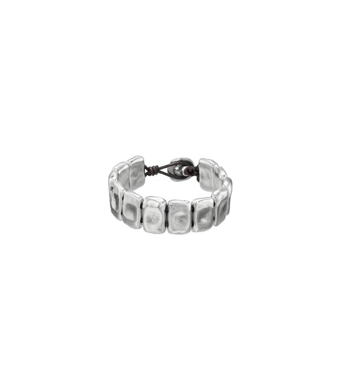 Pulsera para mujer UNO DE 50. Aleación de metales con baño de plata 15 micras.Modelo elástico. Cristal artesanal color azul. Talla M. Certificado de garantía y de caliad. Se presenta en estuche y bolsa. Realizado de manera artesanal 100%. Hecho en ESPAÑA.