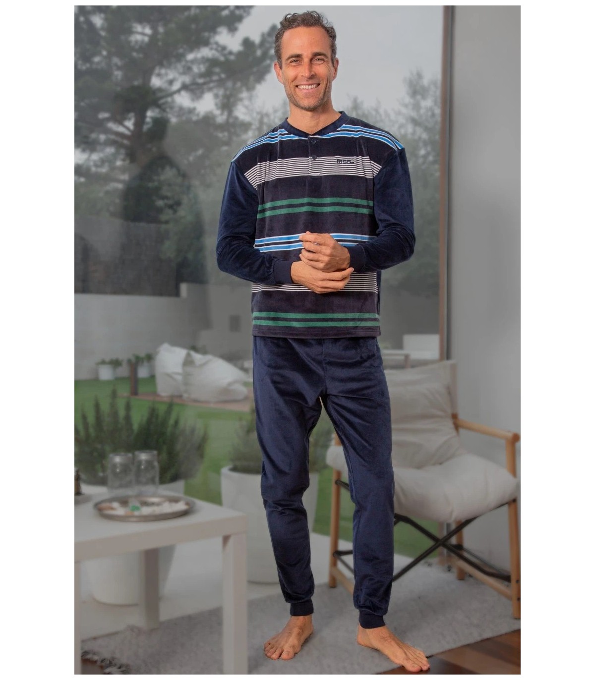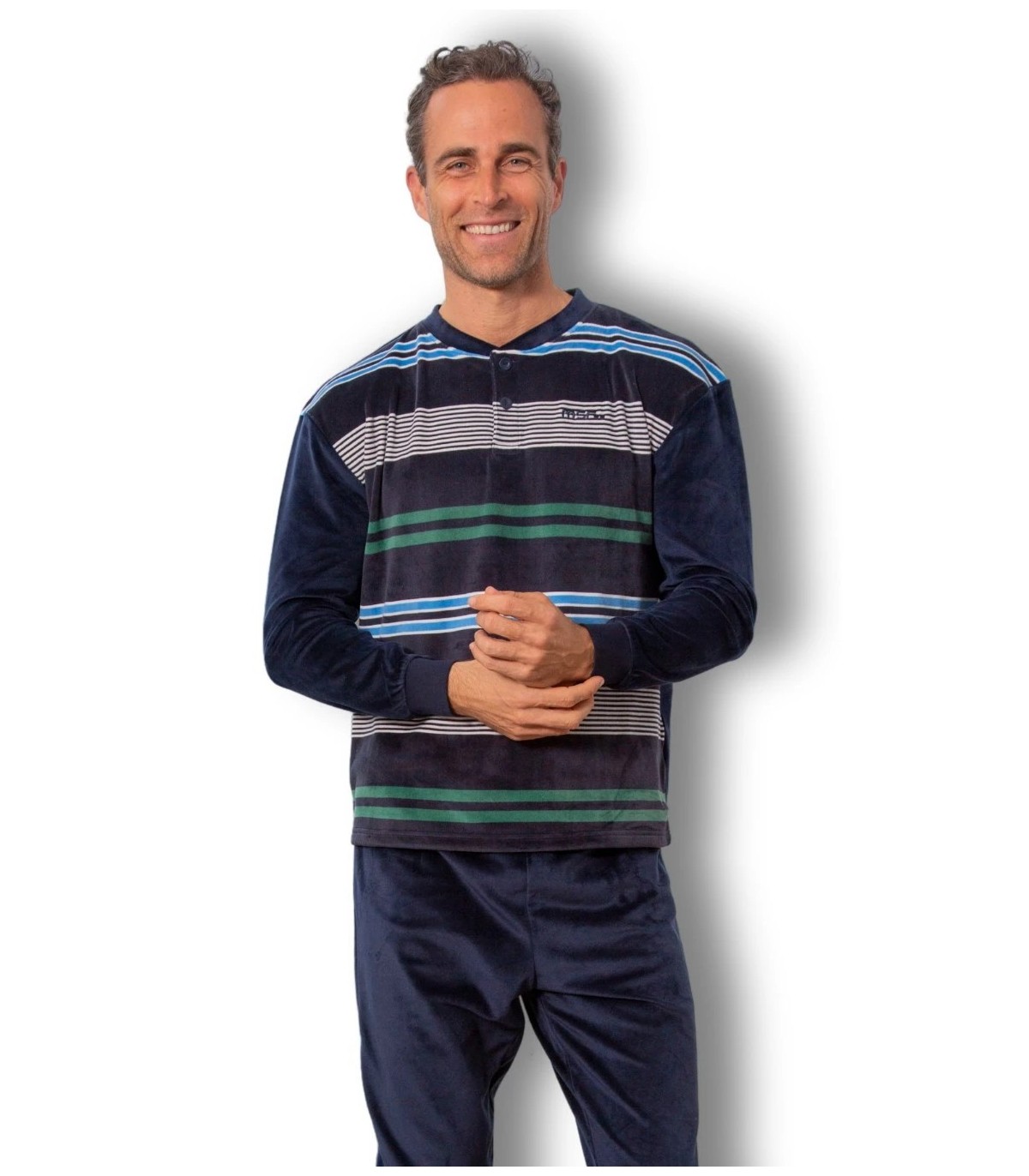 El Pijama Hombre Invierno 245610 de Muslher es la elección perfecta para disfrutar de noches cálidas y confortables durante la temporada fría. Fabricado en spandex, un terciopelo elástico con interior afelpado, ofrece una sensación suave y agradable al tacto que te envolverá en comodidad.