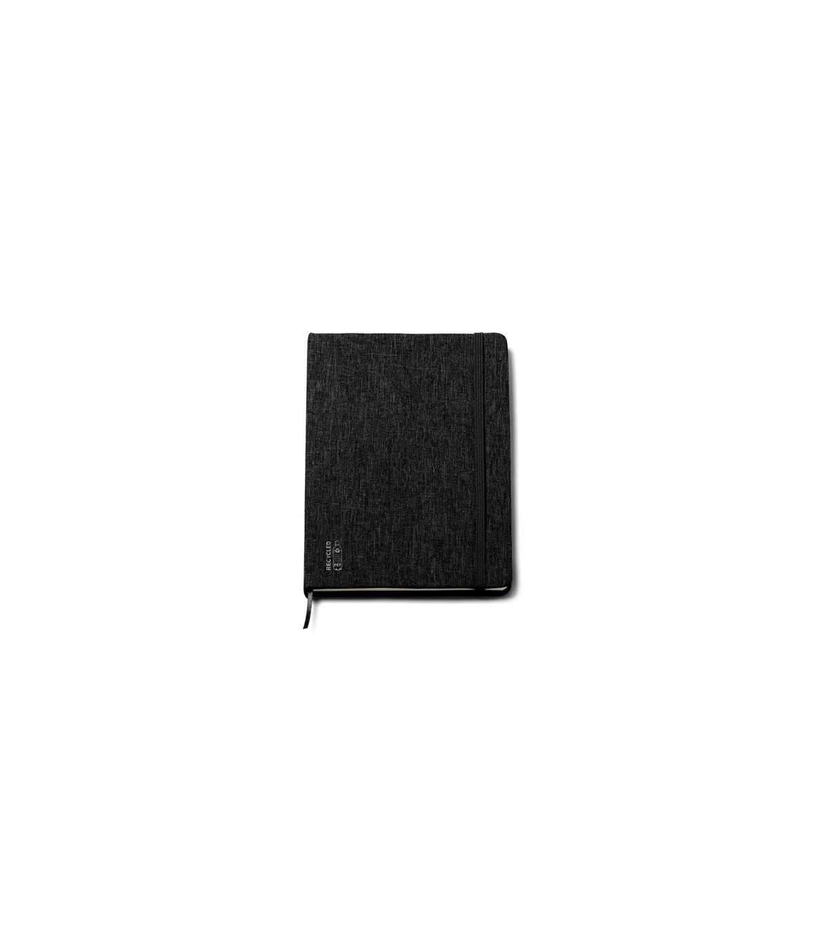 Bloc de notas A5 con tapa rígida de RPET. Marcapáginas y banda elástica a juego. Bloc de notas con 80 hojas.