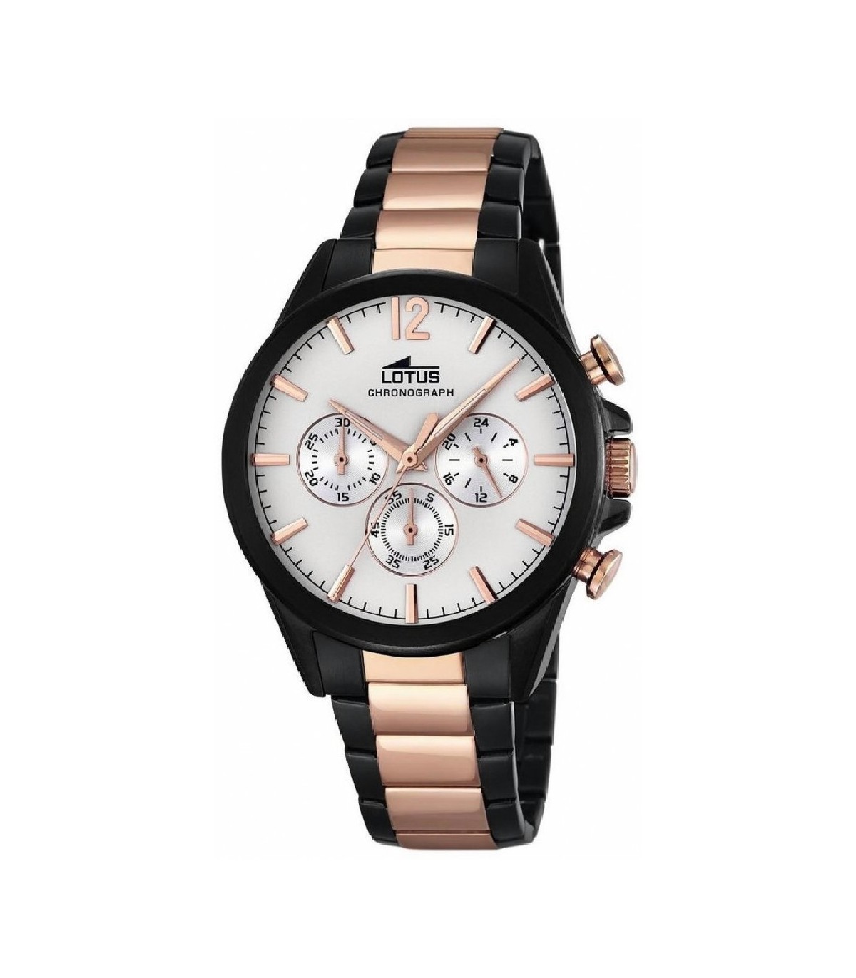 Reloj LOTUS caballero. Cuarzo multifunción. Caja y brazalete acero IP ROSE y NEGRO. Tamaño 42 mm. Resistente al agua 5 atm. Garantia del fabricante 3 años. Se presenta en estuche y bolsa.