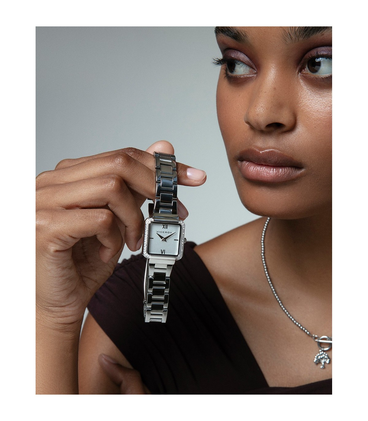 Reloj para mujer VICEROY. Cuarzo analógico. Caja y brazalete acero inoxidable. Tamaño 26 mm. Resistente al agua 30 m. Tamaño 26 x 26 mm. Garantía del fabricante 3 años. Se presenta en estuche y bolsa.