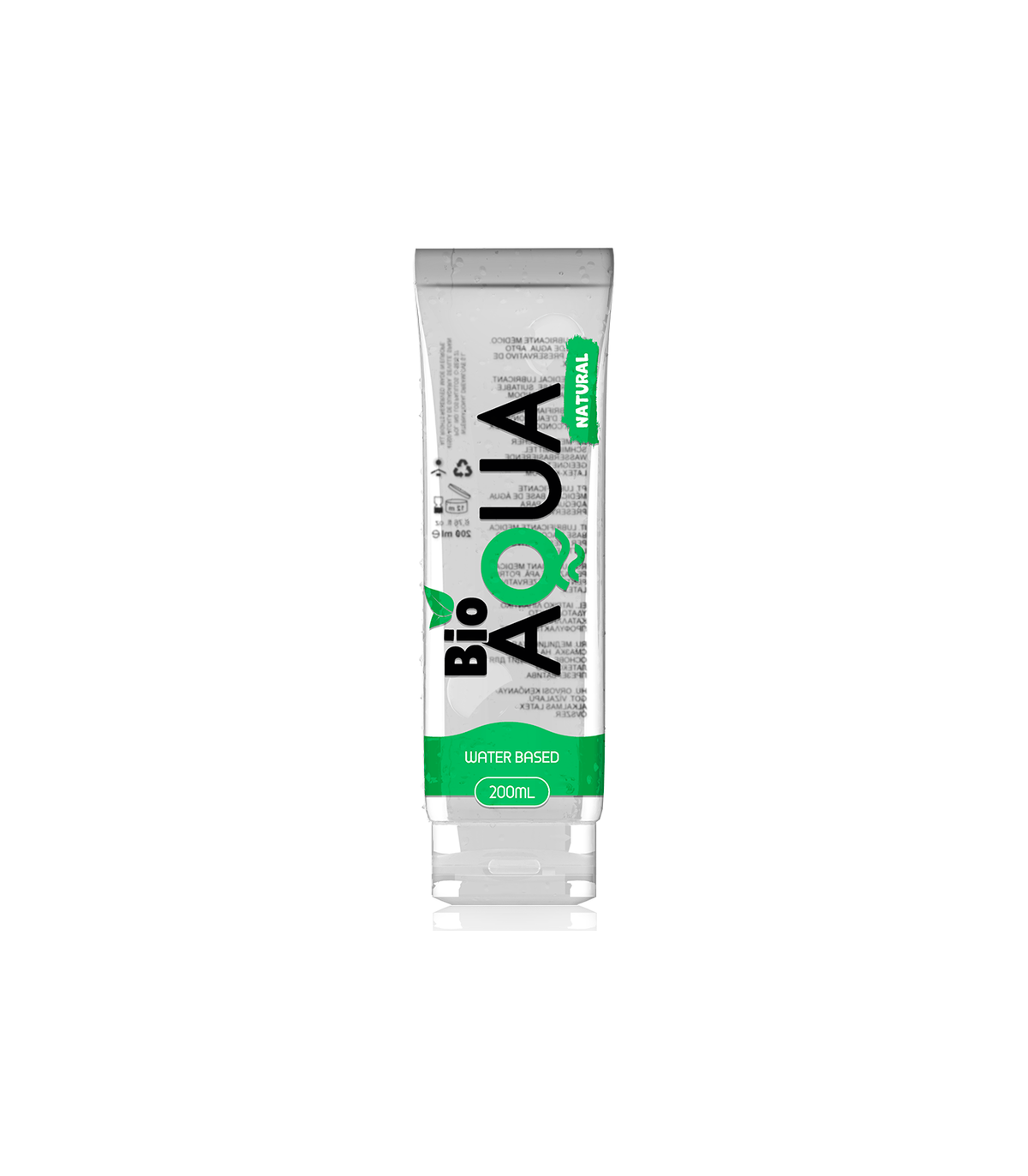 BIOAQUA® también es excelente para usar con preservativos o simplemente piel con piel. A diferencia de muchos otros lubricantes a base de agua, BIOAQUA® no deja residuos. Además, su transparente botella se ve genial en tu mesita de noche.