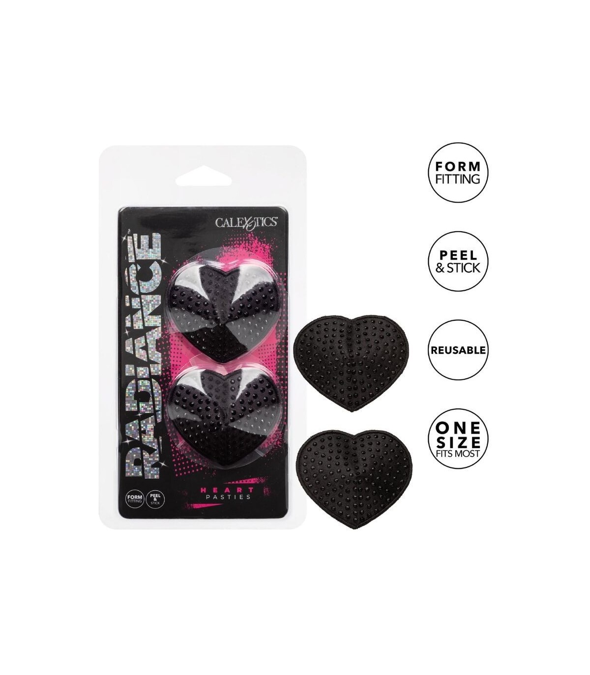 Envuelve tus golosinas en glamour con las deslumbrantes pezoneras Radiance Heart. Estas pezoneras reutilizables están listas para la fiesta con detalles de gemas brillantes, una cinta adhesiva fácil de despegar y pegar y un diseño que se ajusta a la forma.