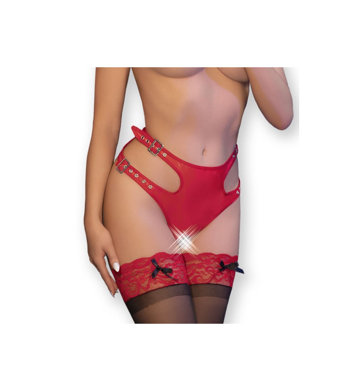 CR 4656 la braguita "entrepierna abierta" de ecopiel es una pieza de lencería provocativa y seductora que combina el encanto clásico con un toque atrevido y juguetón. Esta prenda íntima está diseñada para realzar tus curvas y despertar la pasión, mientras que su estilo provocativo añade un elemento de intriga y sensualidad a tu conjunto.