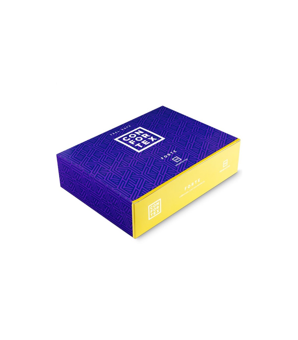 Los inconfundibles diseños junto a su atrevida combinación de colores hacen de CONFORTEX FORTE un producto fácil de identificar con el que experimentarás un sexo seguro más divertido.