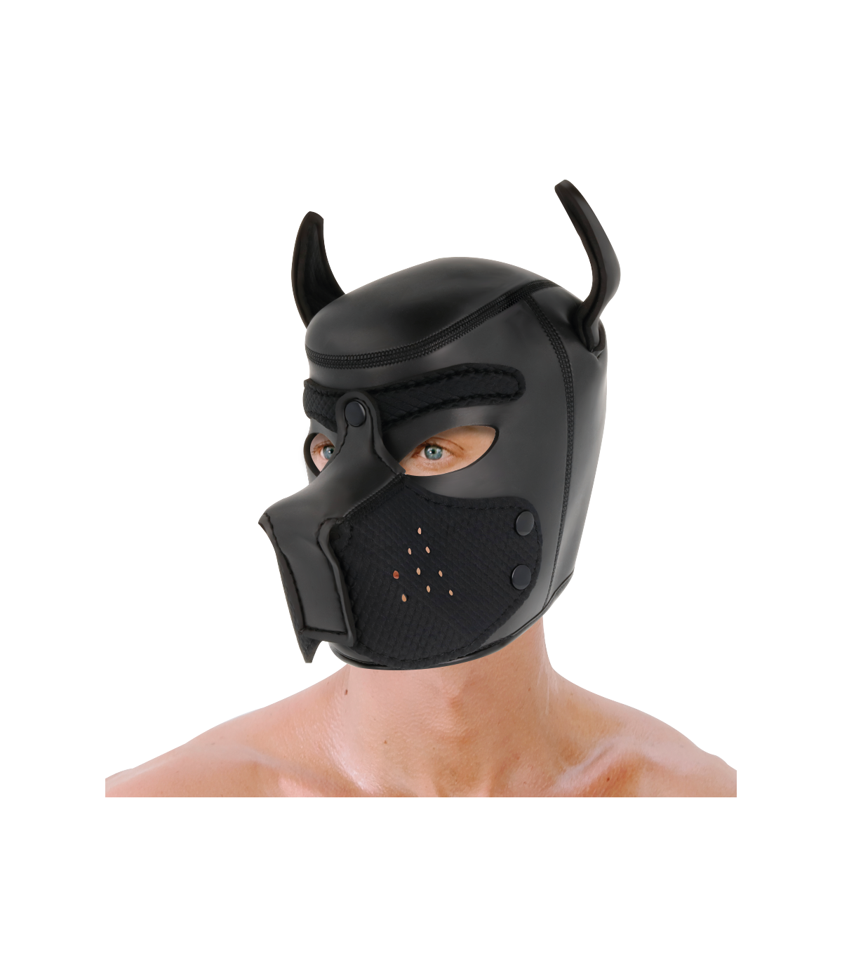 Esta máscara para perros está hecha de neopreno, por lo que es liviana, transpirable y cómoda de llevar. La máscara está diseñada para cerrar con broche en la espalda, y atar las orejas y bozal en su lugar.
