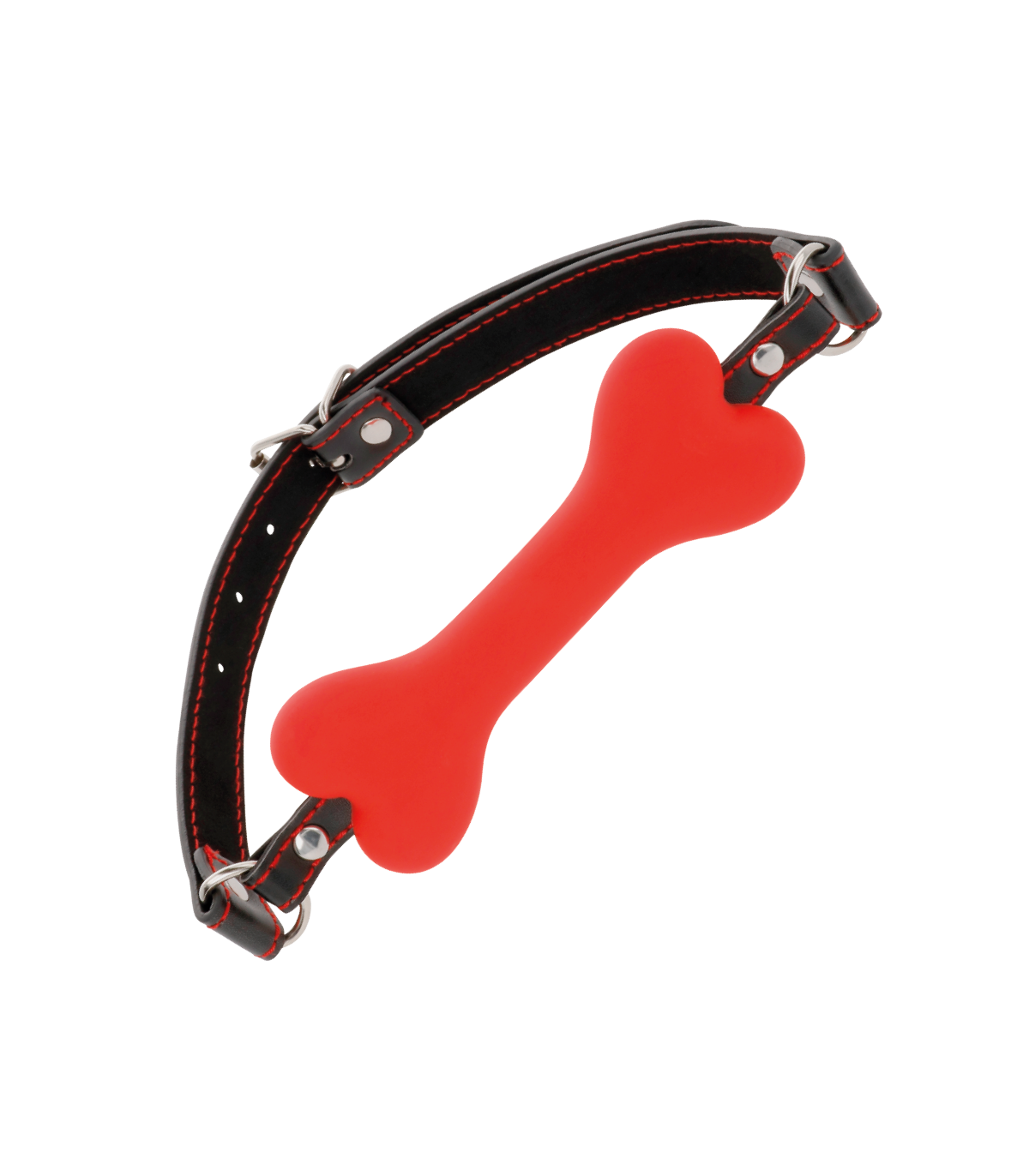 La mordaza tiene forma de hueso para perro para darle a tus aventuras eróticas una nueva mordida.