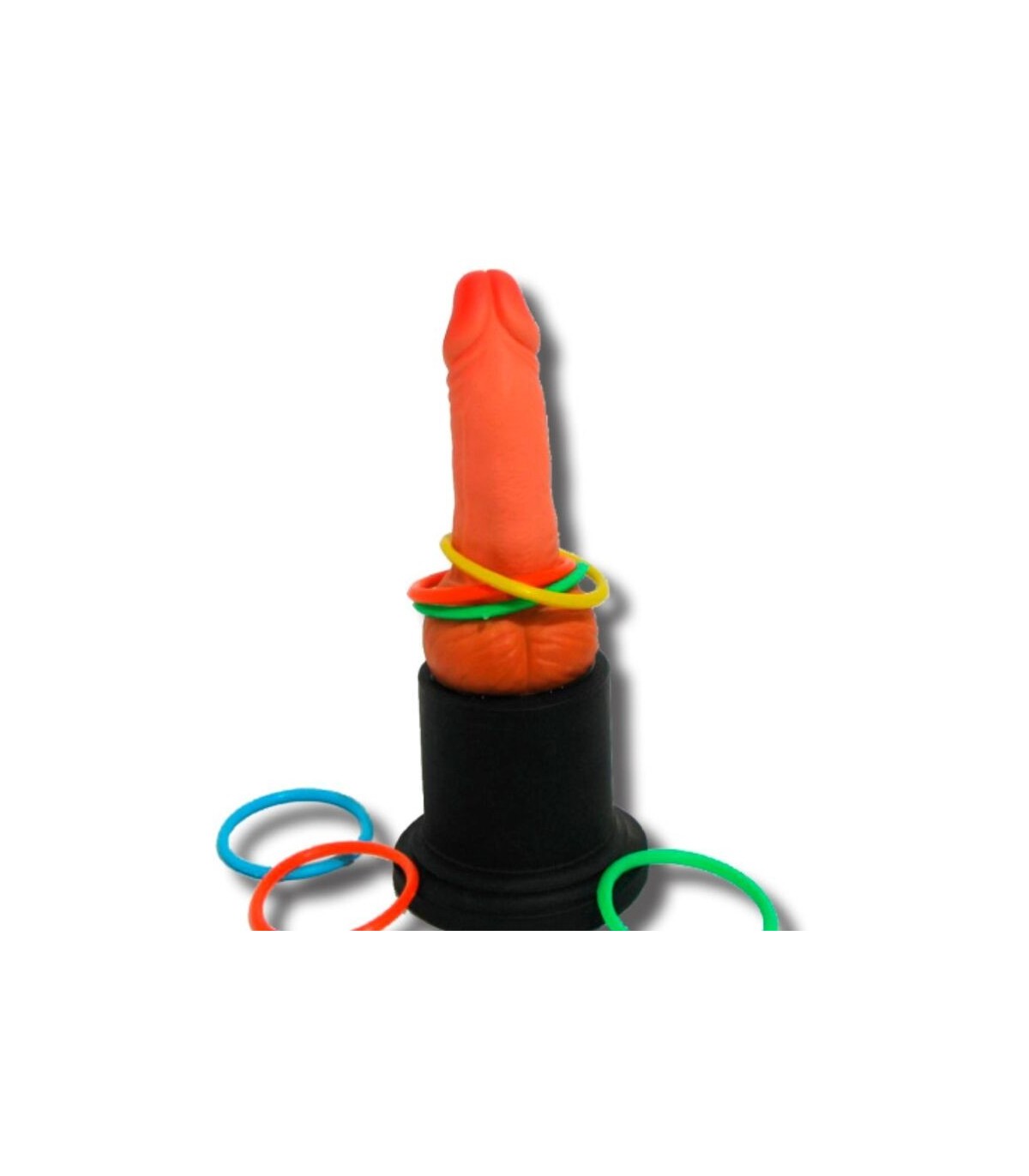 Es un juego de anillas para acertar en el trofeo con forma de PENE. Contiene 1 CINTA DE BONDAGE, 1 VENDA PARA LOS OJOS, 1 PLUMA ESTIMULANTE, 1 DADO DURO DE POSTURAS.