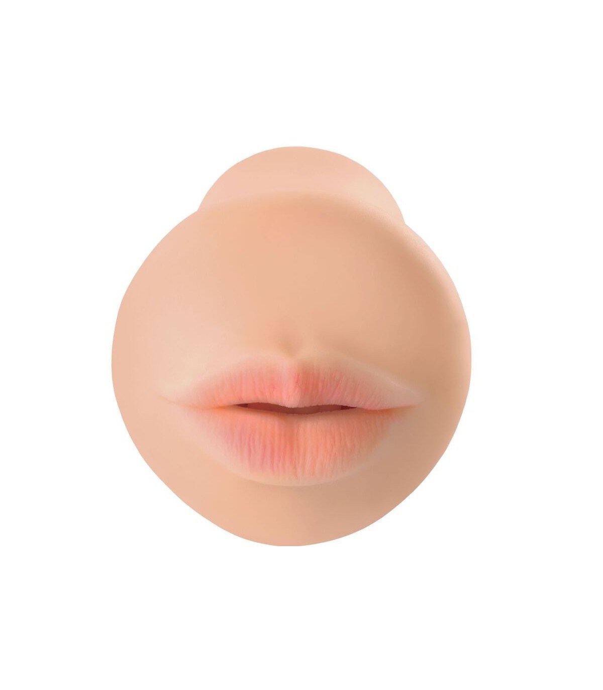 Deslízate entre esos labios deliciosos, pasa por la lengua flexible y los dientes realistas hacia la garganta texturizada que siempre está abierta y lista para tragar tu polla dura como una roca. Ambas filas de dientes provocadores acarician tu eje, mientras que el cómodo túnel con su extremo cerrado te ordeñará hasta dejarlo seco cada vez.