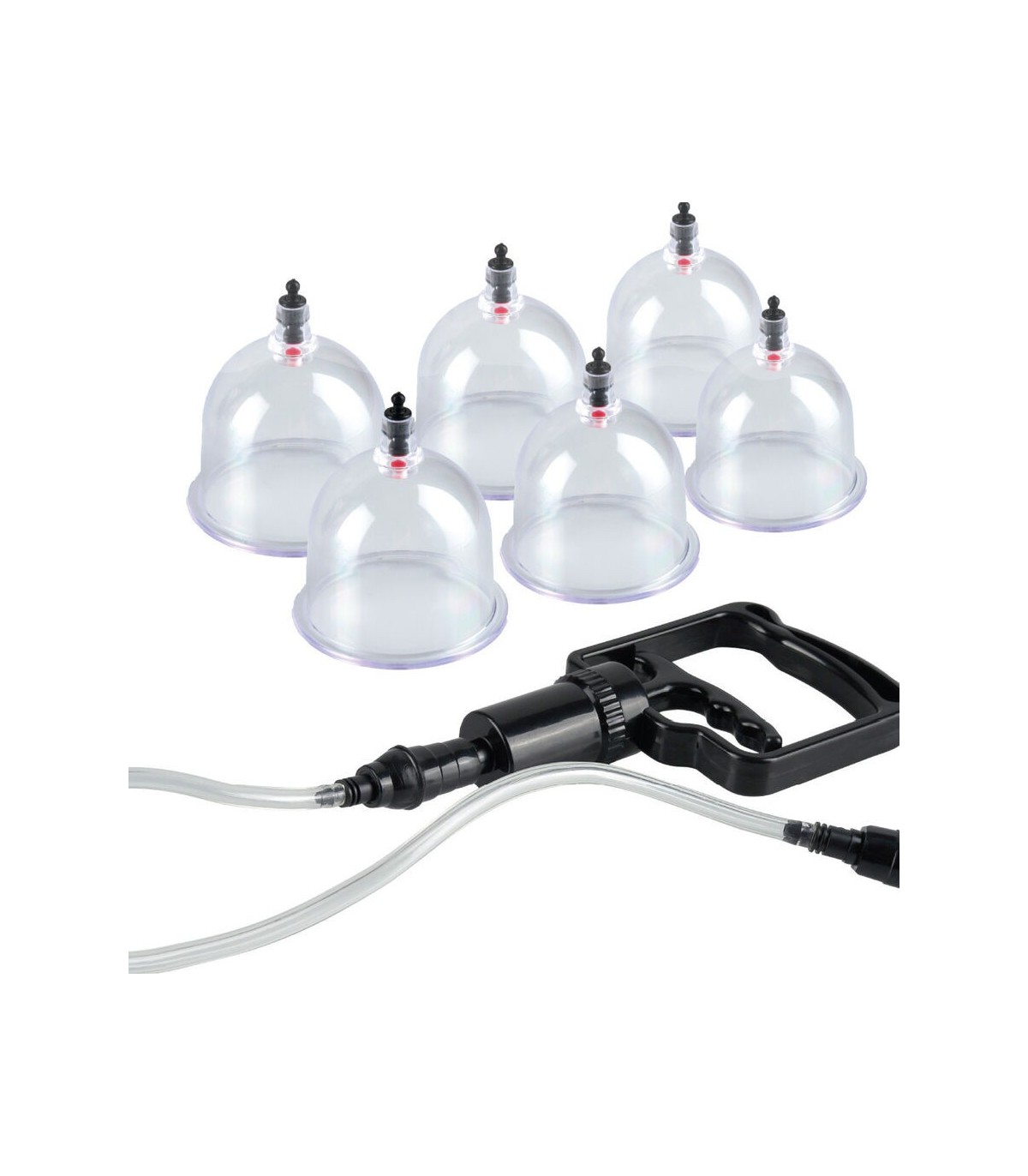 Añade la sensación de la succión a tus juegos fetish con este set principiantes 6 piezas. Basado en una terapia china con estudios científicos, este moderno set de succión esta creado para una potente estimulación alcanzando sensaciones increíbles. La succión incrementa el flujo sanguíneo de la zona facilitando la sensibilidad y creando una sensación única que jamás experimentaste