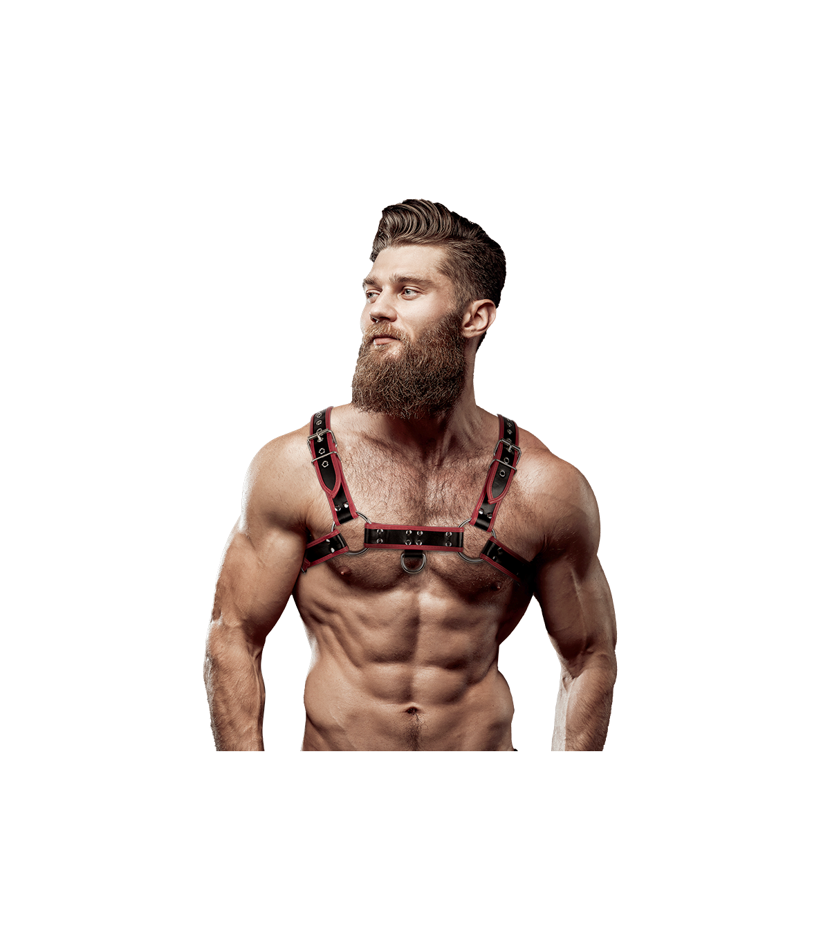 FETISH SUBMISSIVE ATTITUDE - ECO LEATHER CHEST STRAP HARNESS MEN BLACK/RED
