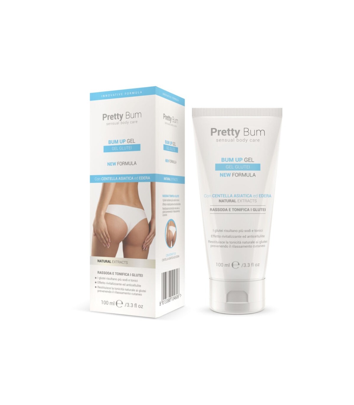 La combinación de sus ingredientes activos ayuda a mejorar la firmeza y elasticidad de la piel. Pretty Bum es rico en extractos naturales, como Centella Asiatica, útil en el tratamiento contra la celulitis y el Ivy, que le da a la piel un aspecto sano, tonificado, compacto y elástico.