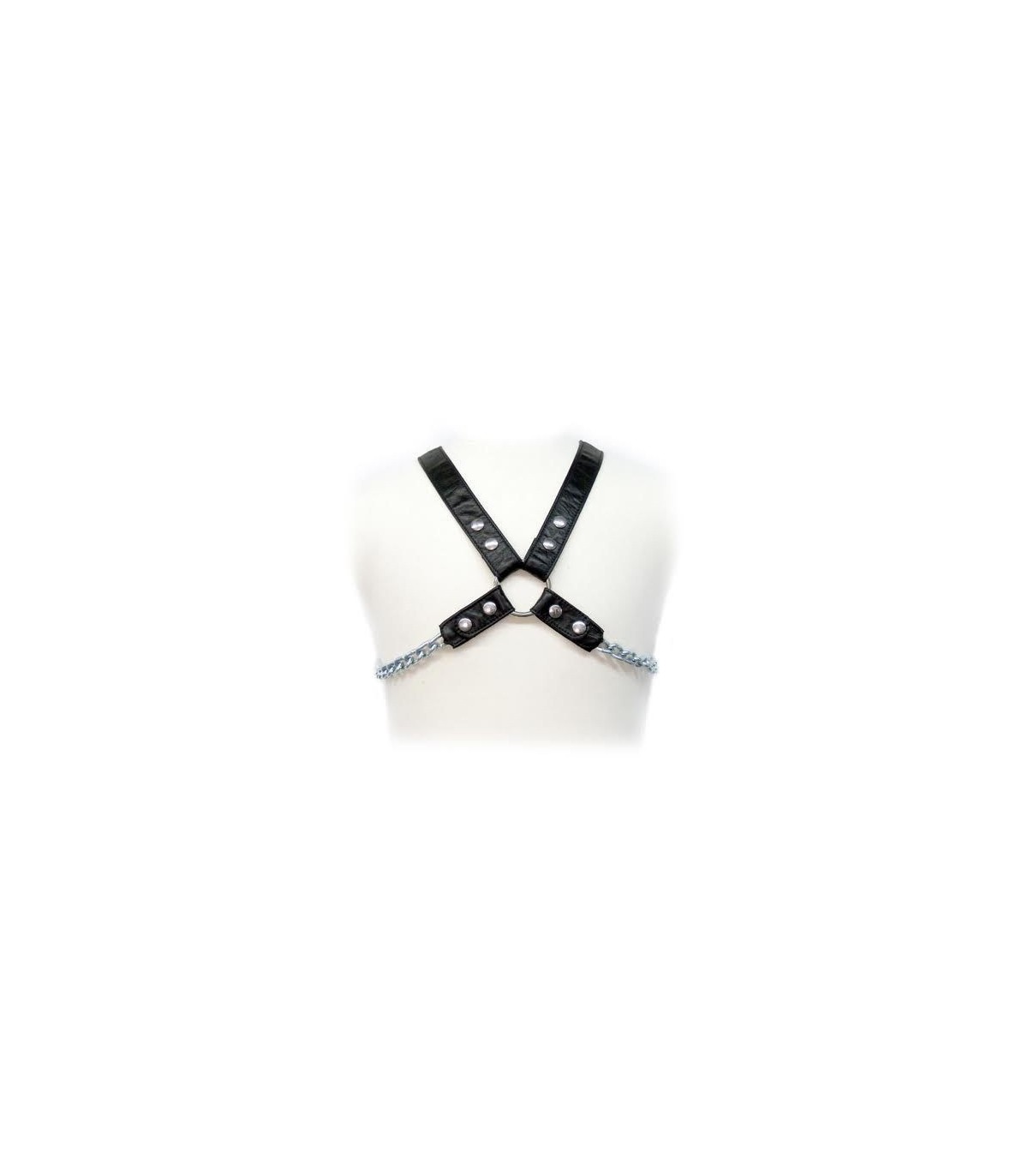 Practica el BDSM, con este Arnes leather para hombre, completamente enlazado y correas ajustables con cadenas de metal