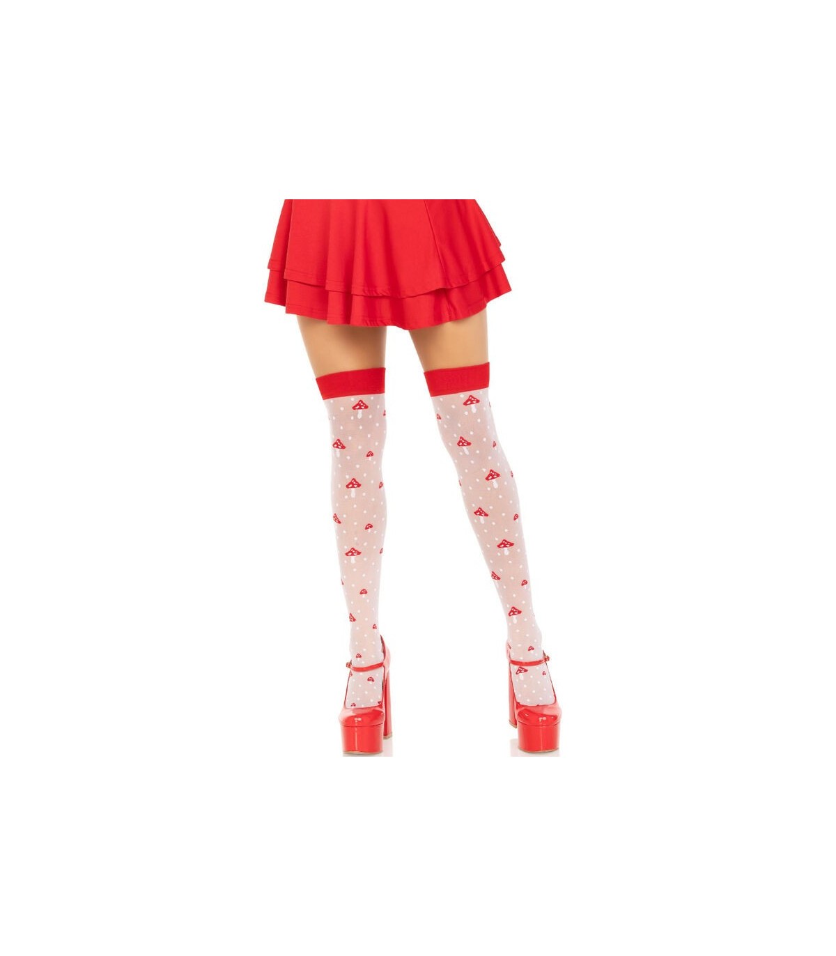 - Medias hasta el muslo de spandex transparente con lunares y champiñones