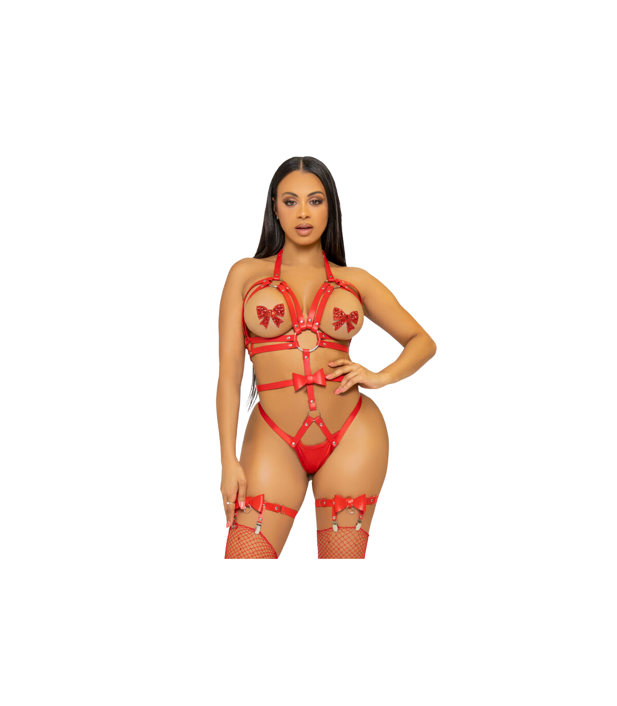 LEG AVENUE - KINK - STUDDED O-RING HARNESS TEDDY SIZE L - RED
