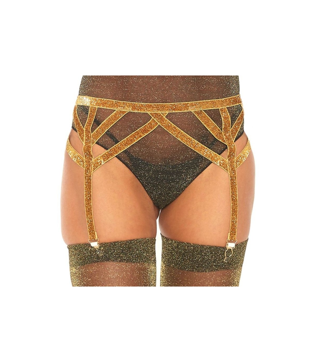 Liguero elástico con lurex brillante fabricado por la prestigiosa marca de lencería Leg Avenue.
