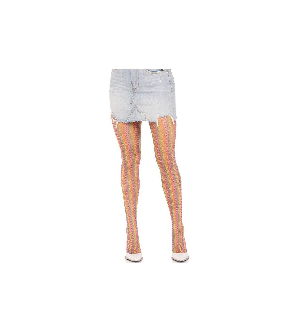 Ilumina tu guardarropa con estas medias arcoíris de red crochet de Leg Avenue. Tu nuevo elemento básico del verano, estas lindas pantimedias cuentan con un intrincado patrón de arco iris tejido que agrega el toque de color perfecto a cualquier atuendo. Ideal para atuendos de festivales y celebraciones del Mes del Orgullo.