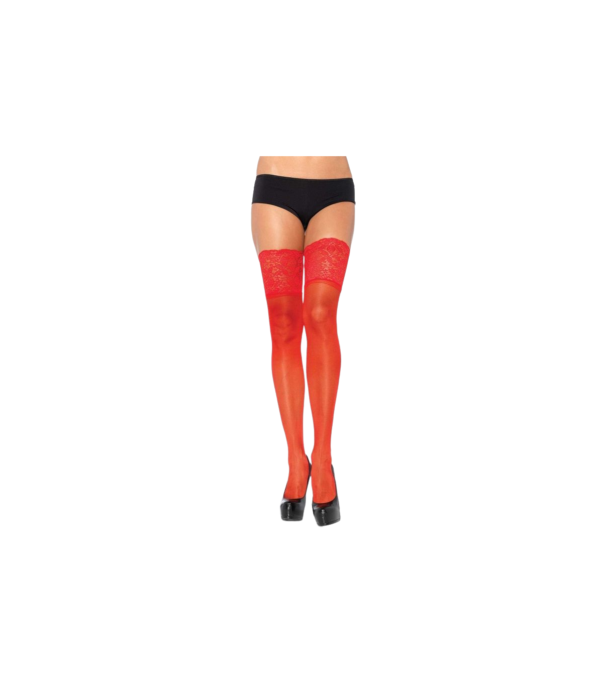 Medias rojas autoadhesivas con encaje ancho Con Leg Avenue reforzarás tu feminidad y obtendrás ese toque justo de seducción, sensualidad y elegancia.
