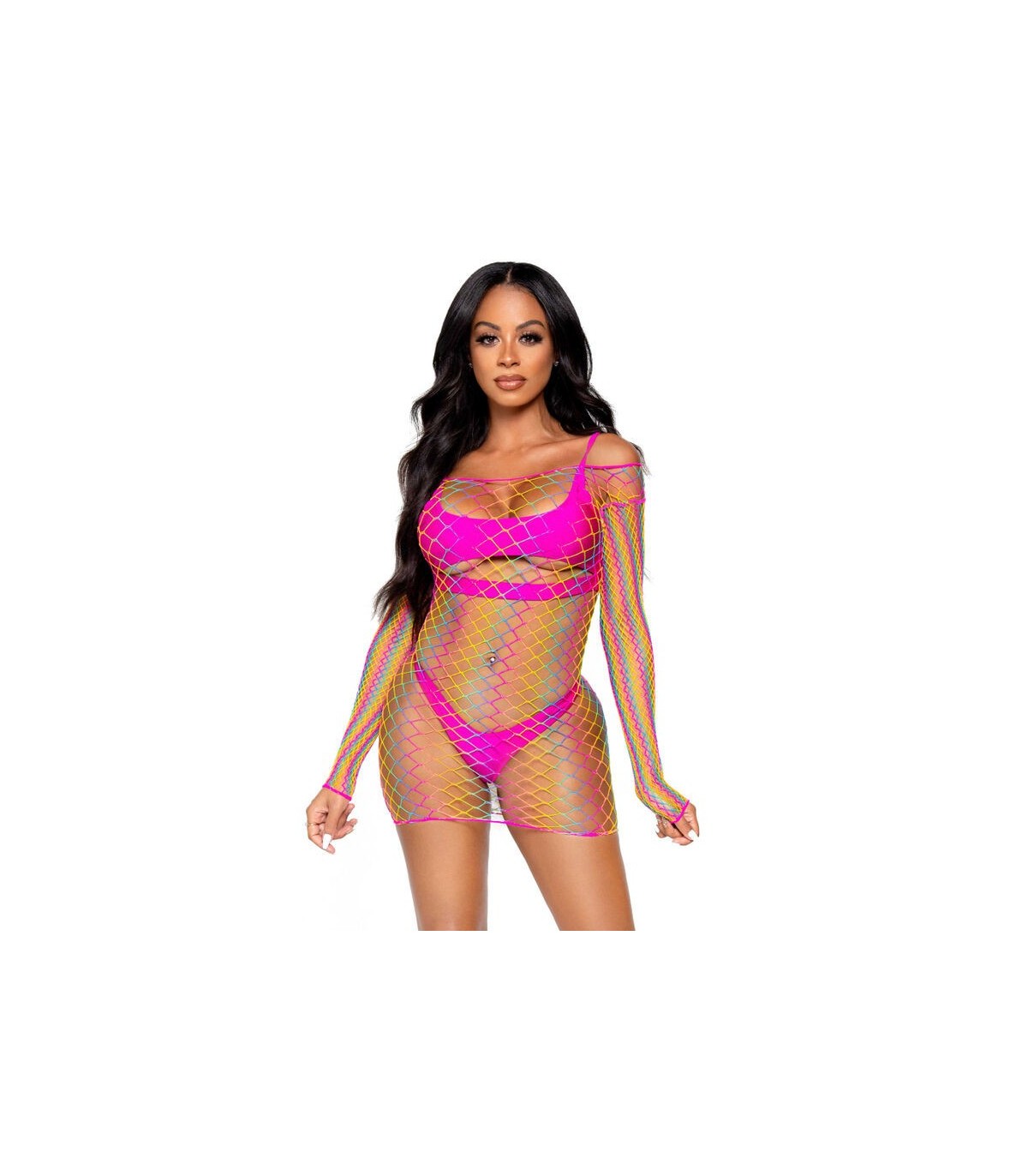 Minivestido arco iris con mangas largas en maxi red de diamante. Con Leg Avenue reforzarás tu feminidad y obtendrás ese toque justo de seducción, sensualidad y elegancia.