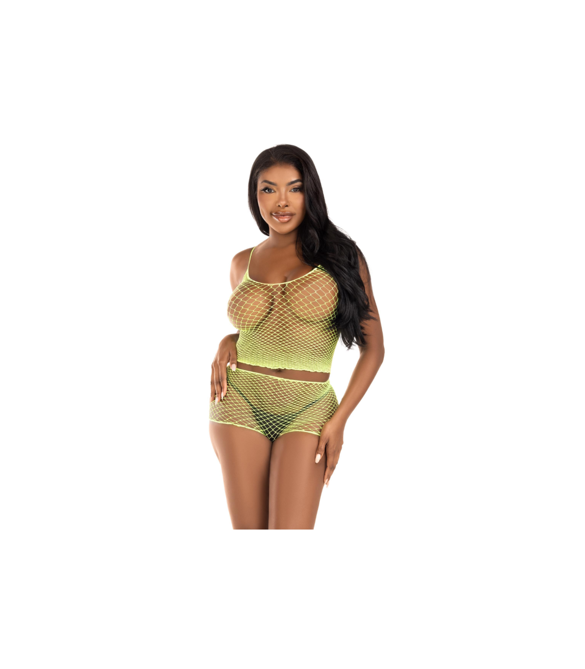 LEG AVENUE - T-SHIRT & PANTS SET FISHNET LIME
