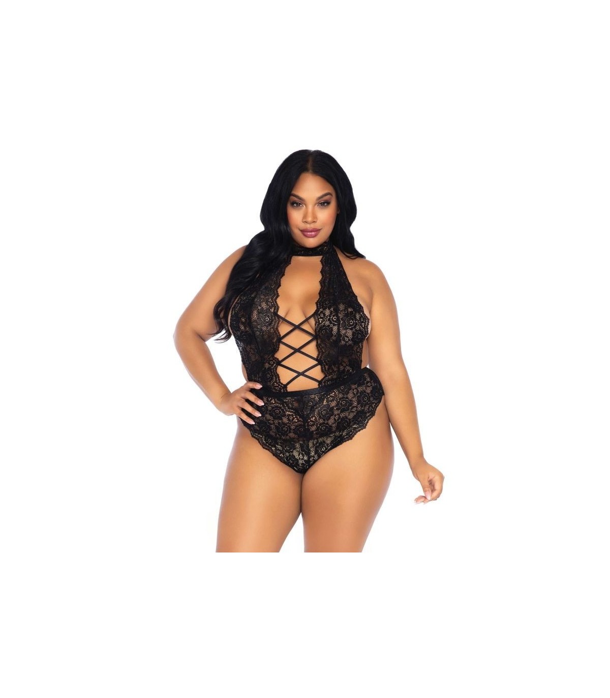 LEG AVENUE - FLORAL LACE CROTHLESS TEDDY PLUS SIZE