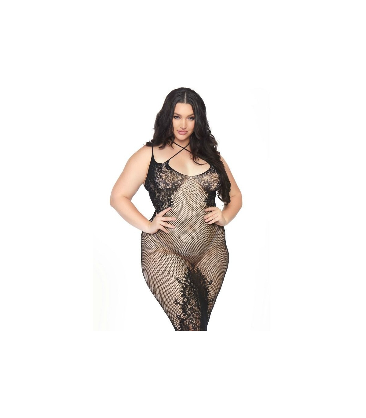 Vestido sin costuras de red y encaje con tirantes dobles, cuello halter y tiras entrecruzadas en la espalda fabricado por la prestigiosa marca de lencería Leg Avenue. Con Leg Avenue reforzarás tu feminidad y obtendrás ese toque justo de seducción, sensualidad y elegancia.