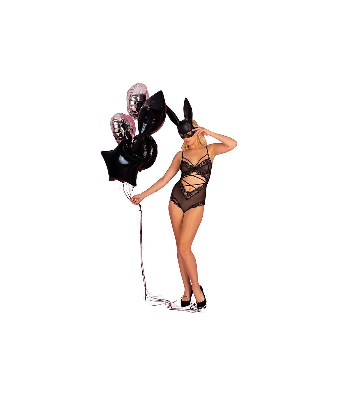 El sensual body Kylssiam es una propuesta perfecta para una velada especial. Harán que toda mujer se sienta sumamente atractiva y tentadora.Elegancia y sex-appeal. La lencería de noche Kylssiam es una combinación de elegancia discreta y sensualidad audaz. El body está hecho de material transparente en el clásico color negro. Las copas del sujetador y la parte inferior de la ropa interior están hechas de una delicada malla de tul fino. El tejido elástico se adapta al cuerpo. La ropa interior está decorada con sutiles encajes con adornos vegetales en el busto, el vientre, las piernas y las nalgas. Los tirantes finos se pueden ajustar en longitud. Hay costuras sexys en las copas del sujetador y en ambos lados del body. Hay un corte audaz en forma de diamante en el vientre, que deja al descubierto el ombligo. Tanto esta zona como el busto están decorados con delicadas rayas, al igual que el profundo escote de la espalda. La lencería de noche de Kylssiam deja al descubierto sensualmente el vientre y los senos. Está disponible en dos tallas S/M y L/XL.