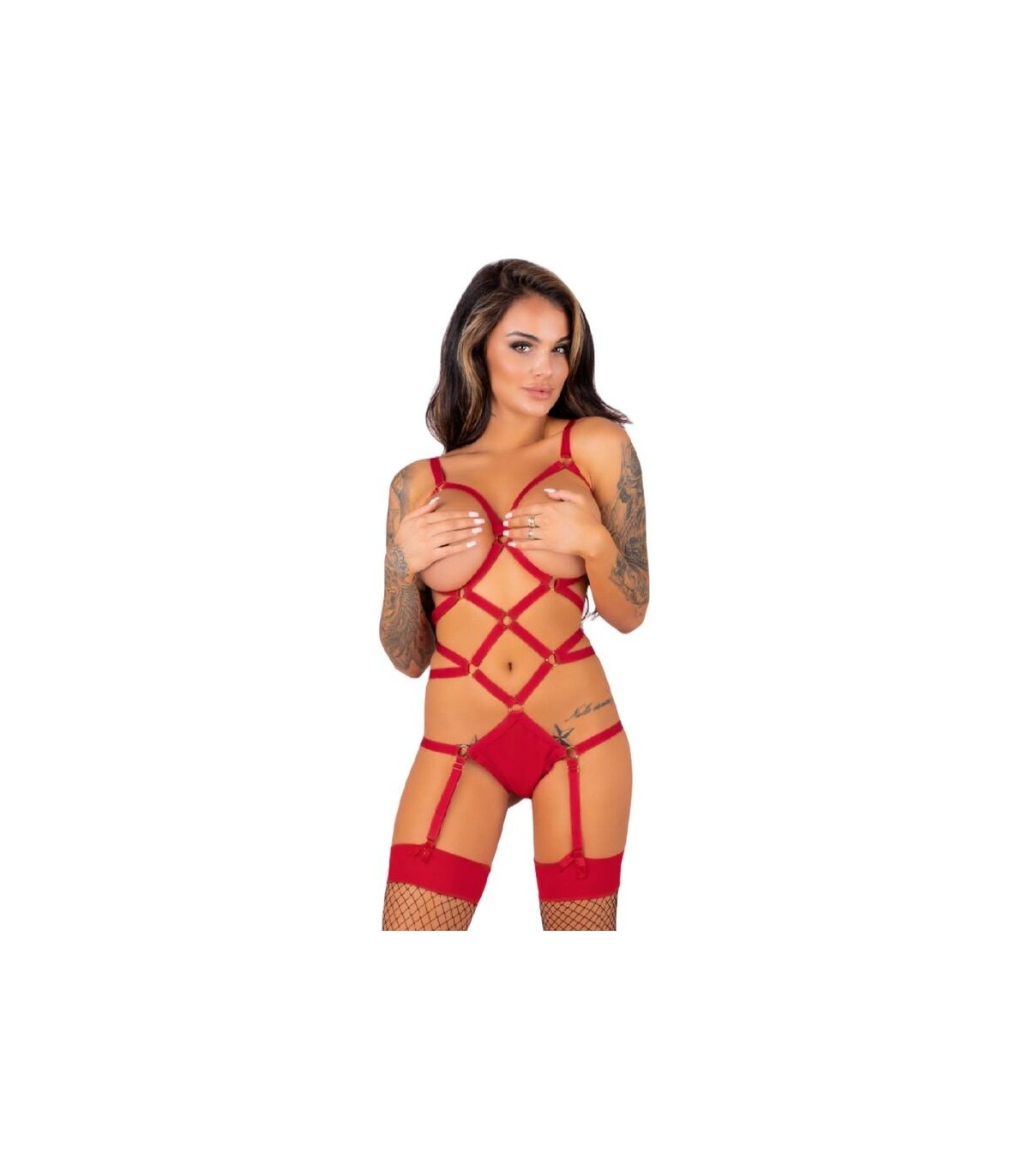 Un conjunto único y sensual para mujeres enérgicas y valientes. Intrigante, sorprendente, misterioso, exactamente lo que debe ser un conjunto de lencería erótica. A veces tiene que cubrir algo, a veces revelar más, y a veces... ser original y un poco loco. ¿Por qué? ¡Porque en el dormitorio no hay lugar para el aburrimiento! El conjunto Thiara Red es una combinación de esta locura con estilo y elegancia. Sin duda sorprende por su diseño original y por el hecho de que se ve completamente diferente por detrás que por delante.