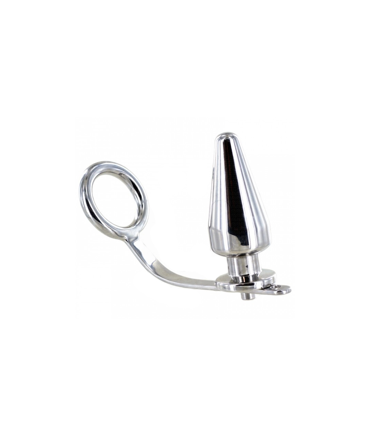 Consiste en un aro de acero quirúrgico del que sale una barra con una bola en el extremo. EL plug es para colocarlo en el ano. Utiliza un poco de lubricante para introducirlo.