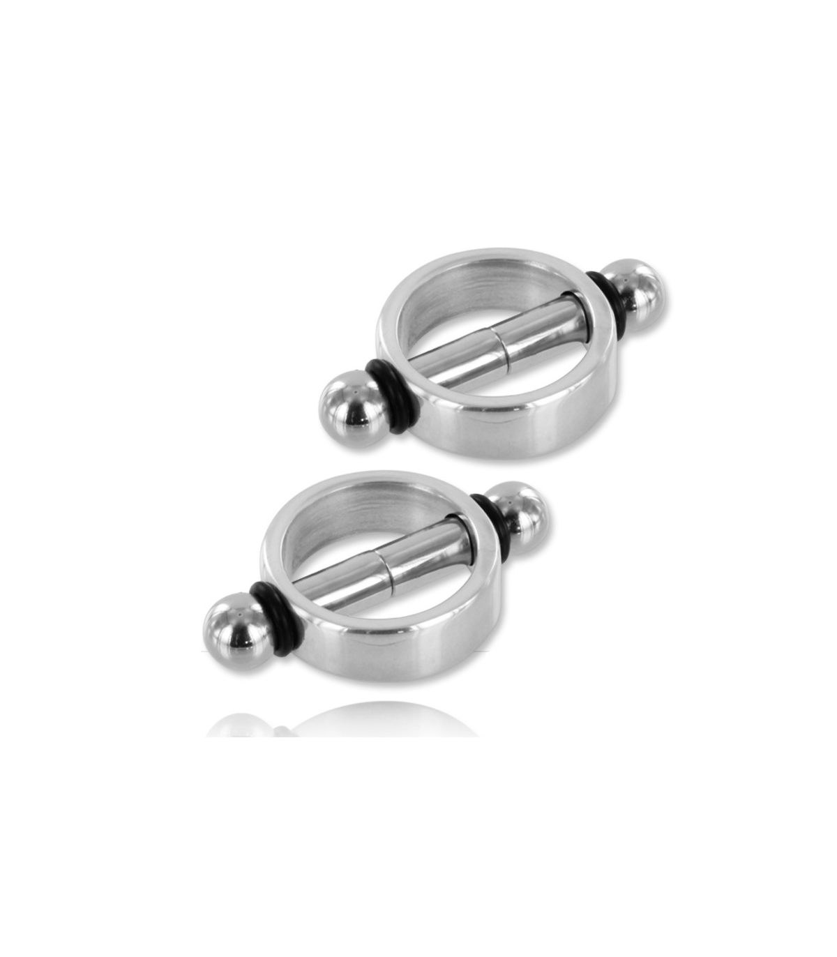 Estas pinzas magnéticas para pezones son geniales para mujeres y hombres durante el juego de bondage y fetiche (BDSM), ya que provocan un dolor agradable en los pezones. El anillo de aluminio tiene dos varillas magnéticas que se pueden separar y deslizar hacia atrás para sostener firmemente el pezón.