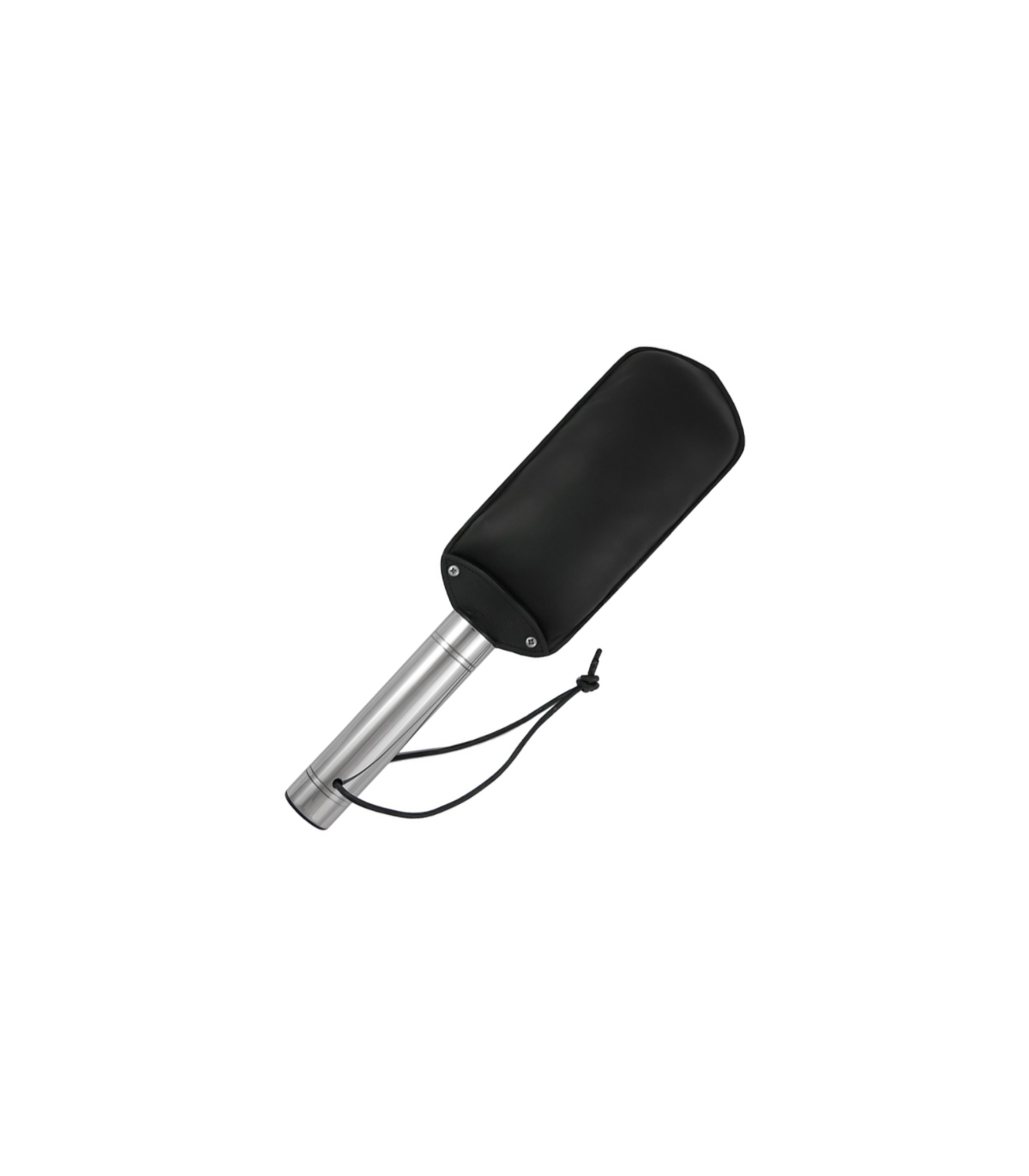 Suave por un lado y metálico en acero inoxidable por el otro, esta es una pala azotadora para un juego de calidad. Hecho de cuero genuino original y acero inoxidable, la pala tiene un núcleo de metal con memoria, por lo que continuamente vuelve a su forma.