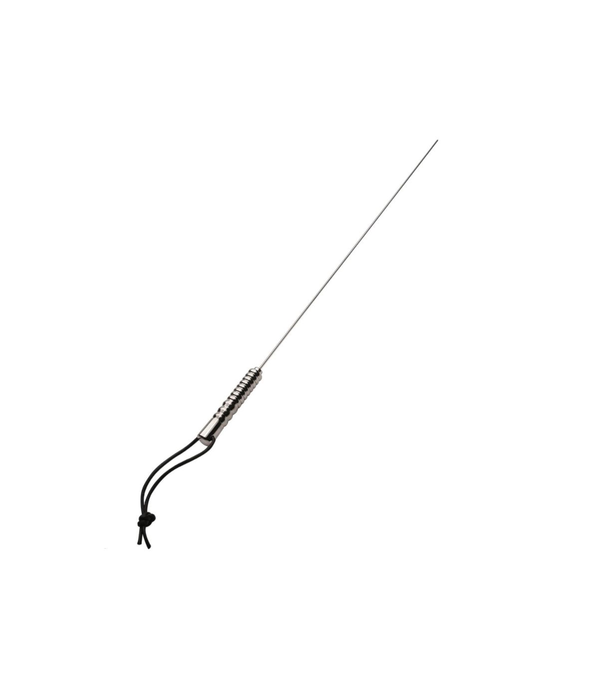 Toda la longitud de esta varilla está construida de acero inoxidable brillante. Mide solo 2.3mm pulgadas de ancho, el metal delgado es lo suficientemente flexible para un buen resorte, pero lo suficientemente grueso para una picadura exquisita.
