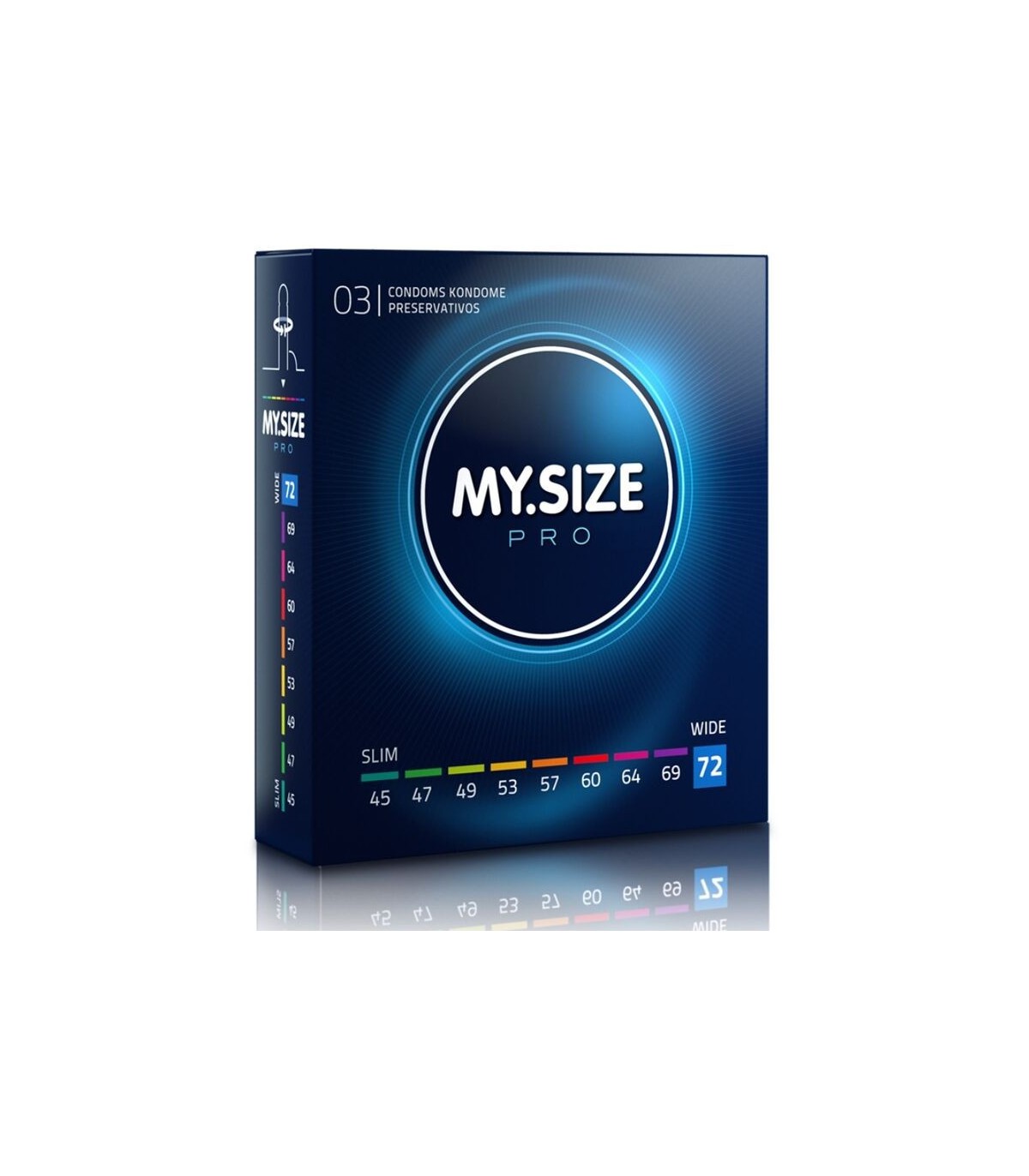 - MY.SIZE PRO es la única marca en el mundo que ofrece una amplia gama de anchos para sus usuarios: 45 – 47 - 49 -53 - 57 - 60 - 64 - 69 - 72