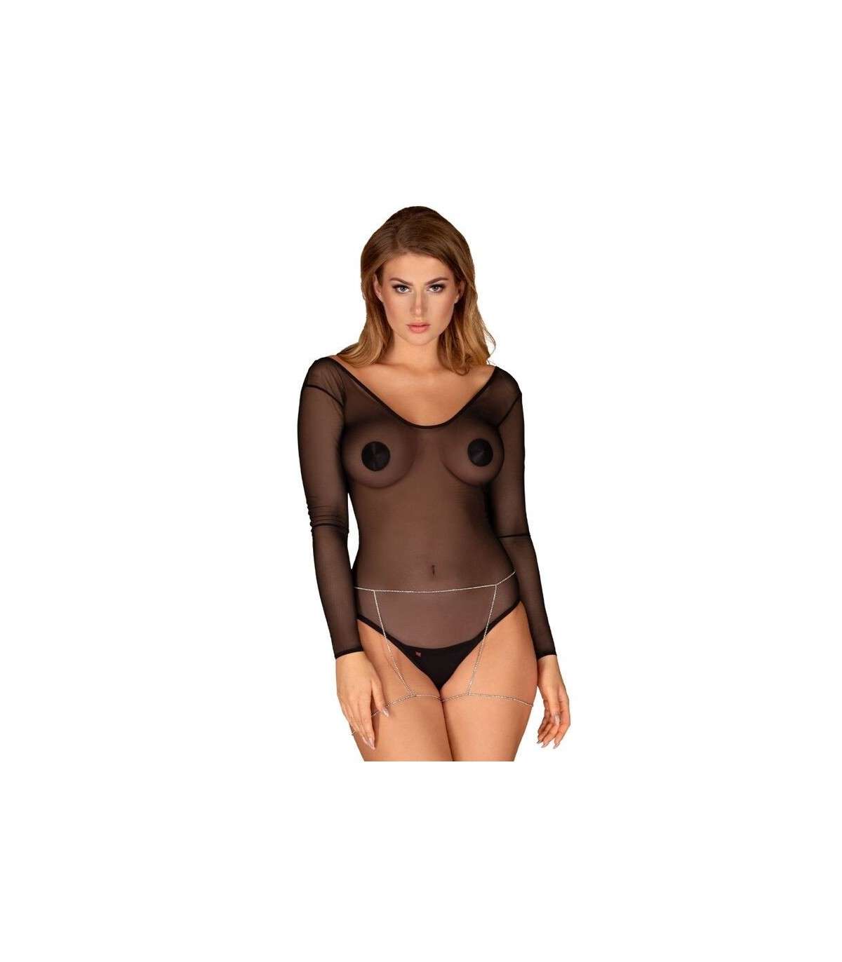 ¡La elección perfecta! Tus piernas serán un punto de luz de ahora en adelante. Intenta calentar la atmósfera antes que tu pareja te vea. Por la mañana dile que una sorpresa muy sexy le aguarda para esta noche Esperará durante todo el día. Por la noche, verá tus increibles piernas que brillarán gracias a este arnés plateado. Te encantará este estilo.