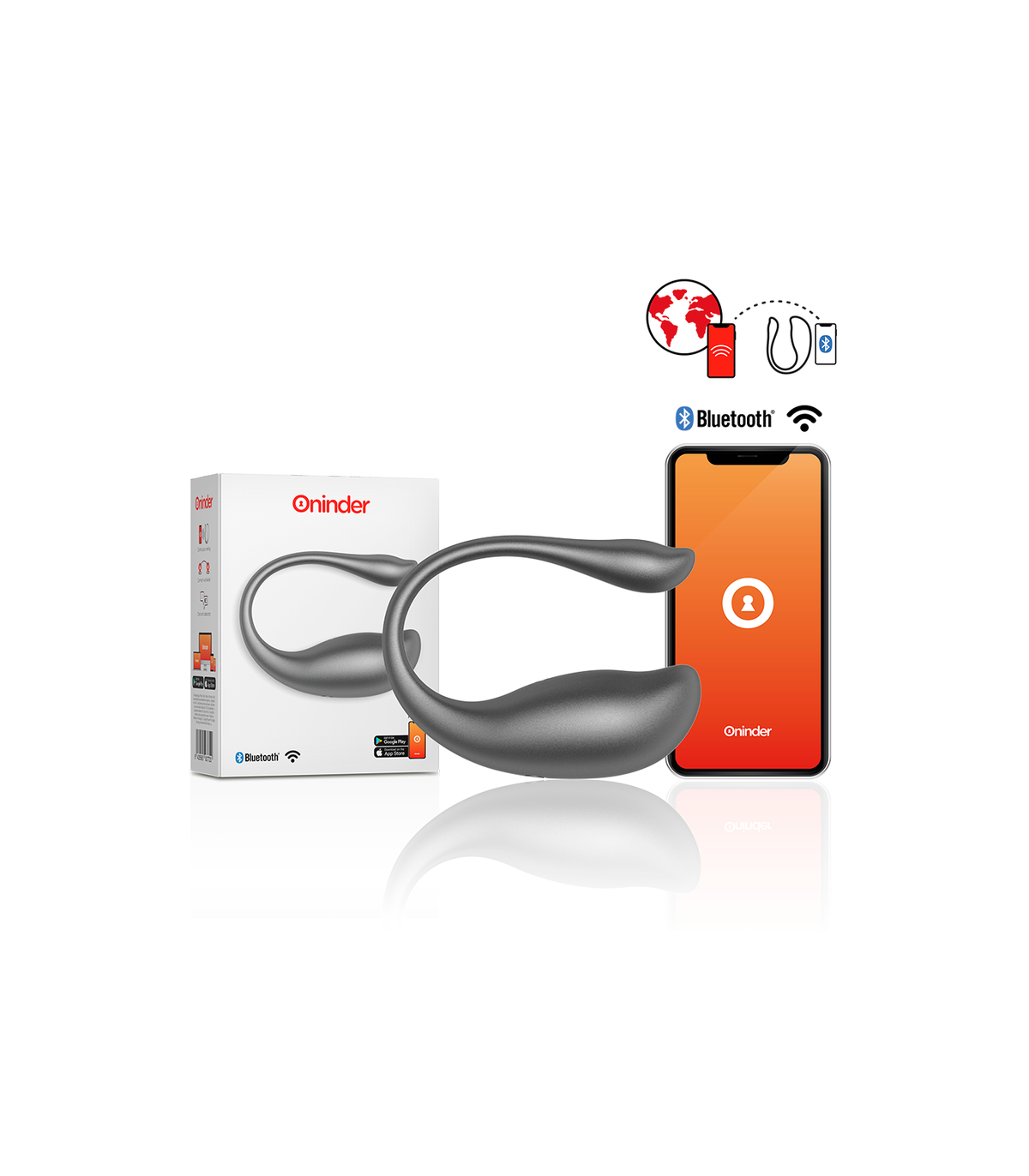 Con este vibrador no solamente puedes elegir entre combinaciones de intensidad y vibraciones preestablecidas, sino que también puedes compartir a un innovador control basado en una aplicación. Simplemente tienes que descargar la aplicación gratuita ONINDER™   en tu dispositivo Android o iOS y conectar tu smartphone o Tablet.