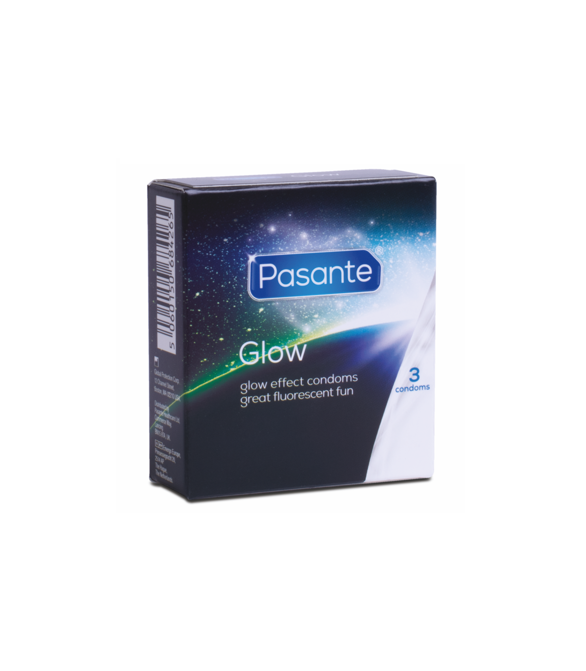 Los condones Pasante Glow brillarán en la oscuridad después de ser expuestos a la luz. Liso.